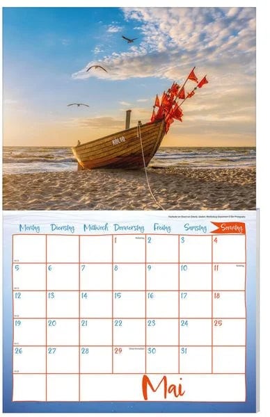 Monats-Wandkalender, Taschenkalender, Magnet-Lesezeichen, Notizbuch, großer Jahresplaner, Haftnotizen, Notizblock, Bleistift ... Mit dem Sonne, Wind und Wellen Kalenderpaket 2025 haben Sie nicht nur einen praktischen Jahresplaner zur Hand, sondern auch viele weitere nützliche Accessoires im maritimen Design. Ob als Geschenk für Freunde oder als persönliche Auszeit für sich selbst, dieses Kalenderpaket ist ein echtes Highlight.