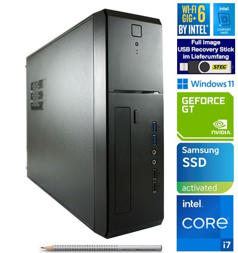 Der STEG PC Professional 70 VI ist für seine fortgeschrittene Ausstattung günstig im Preis und dennoch voller Leistung. Das System mit dem neusten Intel® Core i7-12700 12-Kern Prozessor der 12. Generation samt verbesserten leiseren Prozessorkühler, 16 GB DDR4 2666 MHz Arbeitsspeicher von Kingston, der schnellen980 NVMe M.2 SSD von Samsung mit grosszügigen500 GB Speicherplatz, einer dedizierten Nvidia Grafikkarte, die sogar leichten Videoschnitt ermöglichtund einem Premium Motherboard von Gigabyte, ist die ideale Lösung für fortgeschrittene PC-Nutzer, KMU Anwender, sowie Heim- und Büroanwender, welche Wert auf zuverlässige schnelle Performance und hochwertige Markenkomponenten legen. Verpackt in einem platzsparenden Gehäuse, welches mit einem sehr leisen Netzteil aufwartet, macht dieser PC jederzeit eine gute Figur, egal ob sie ihn waage- oder senkrecht einsetzen.