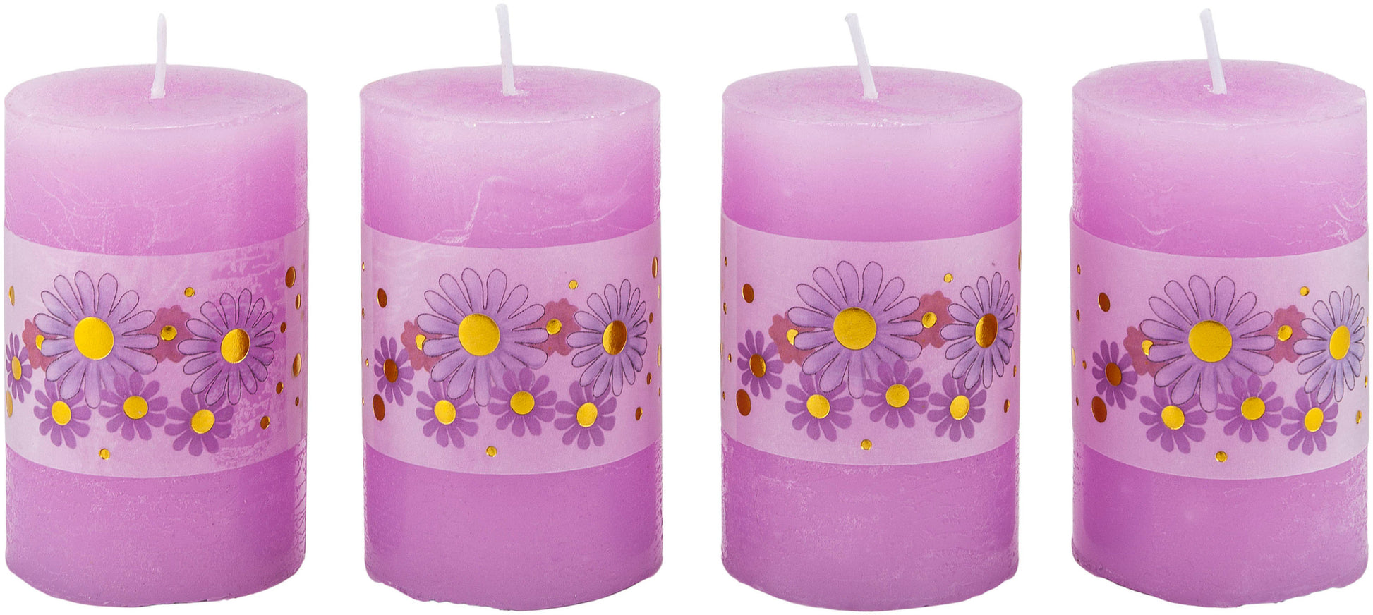 - 4 Stumpenkerzen im Farbton Flieder