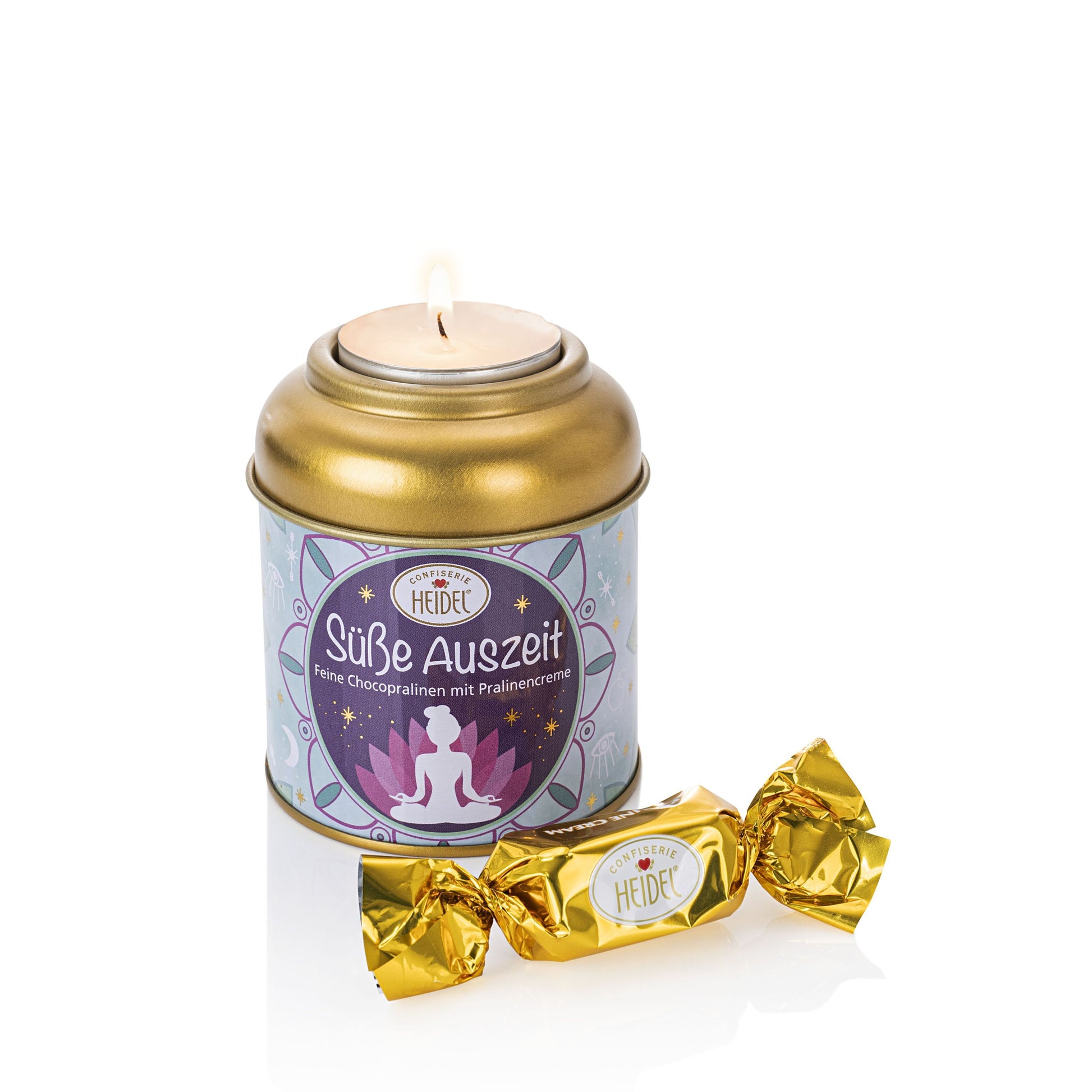"Süsse Auszeit" Dose mit Kerze von Confiserie Heidel