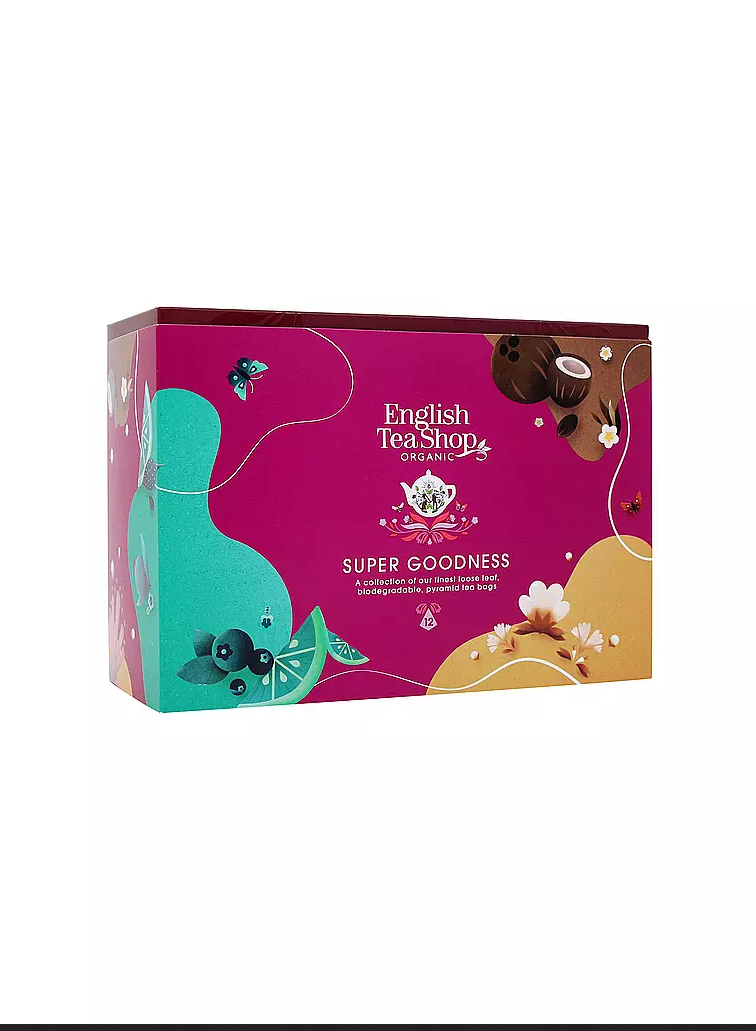 Ein perfektes Geschenk für alle Liebhaber moderner Tee Mischungen mit vielen Superfood Zutaten. Ideales Teeset zum Kennenlernen neuer Sorten aus der Super Goodness Kollektion von English Tea Shop in einer stylishen Tee Geschenkbox.
