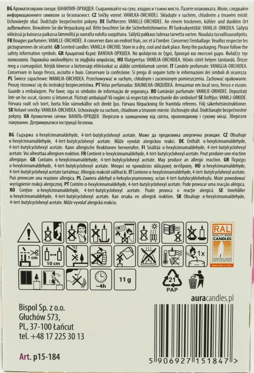 Tauche jetzt in die Welt der romantischen Stimmung ein und bestelle diesen praktischen 6er Pack. Die Duft Kerzen verbreiten in deinen 4 Wänden einen angenehmen Geruch von Vanille-Orchidee und sorgen für eine wohltuende Aromatherapie. Die extra flachen Teelichter brennen bis zu 4 Stunden und sind auch ideal als Dekoration für zu Hause oder auch auf Partys geeignet.