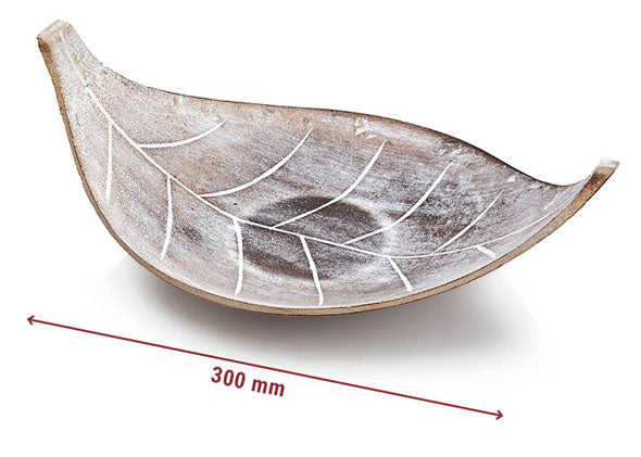 - Große, leicht gewölbte Schale im Blatt-Design, aus Holz mit weiß gewischtem Finish, Länge ca. 30 cm