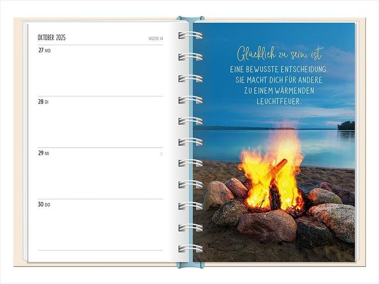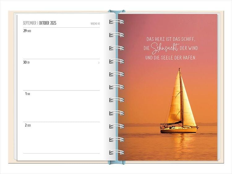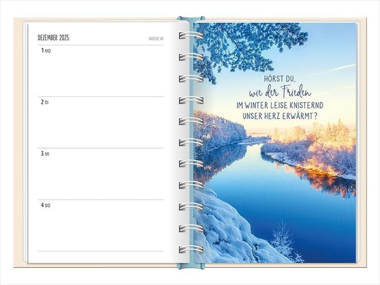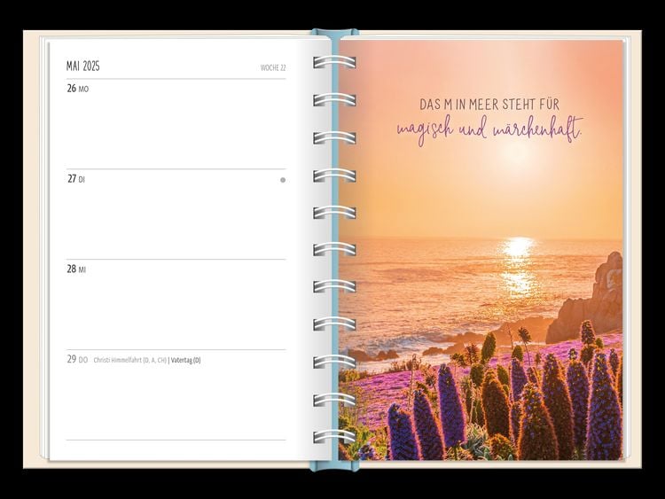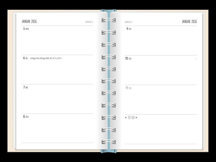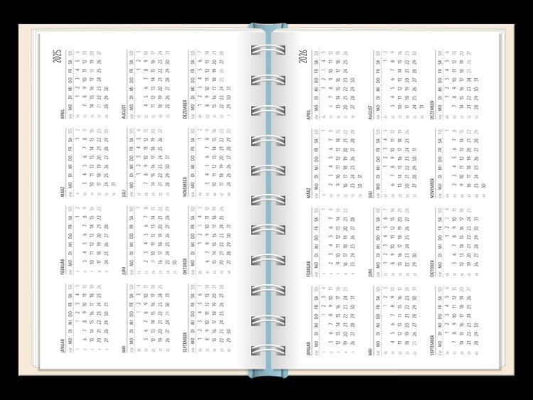 Ein kleiner robuster Terminplaner für 2025 mit vielen Extras Dieser kleine Terminplaner ist ein Multitalent mit naturbelassenem Papier und einem stabilen Hardcover-Umschlag mit feinen Tiefprägungen. Jede Kalenderwoche wird übersichtlich auf einer Doppelseite dargestellt und das extra breite Verschlussgummi hält Zettel, Quittungen und Notizen immer fest zusammen. Zudem bietet eine Falttasche jede Menge zusätzlichen Platz für lose Zettel. Dank einer Jahres- & Monatsvorschau auf einer Seite kannst du das Jahr 2025 mit diesem kleinen Taschenkalender optimal planen. • Kleiner Terminplaner mit hochwertiger Fadenheftung, Hardcover-Umschlag und Satin-Lesezeichen (Format: 10 x 15,5 cm) • 136 Seiten bieten jede Menge Platz für Termine, Notizen und alles andere "Merk-Würdige" • Mit extra Notiz- und To Do-Seiten lässt sich das Jahr 2025 sehr gut organisieren • Schulferien (für D und A) und Feiertage (für D, A und CH) sind eingetragen
