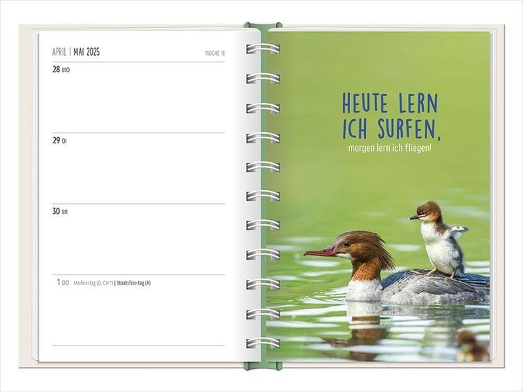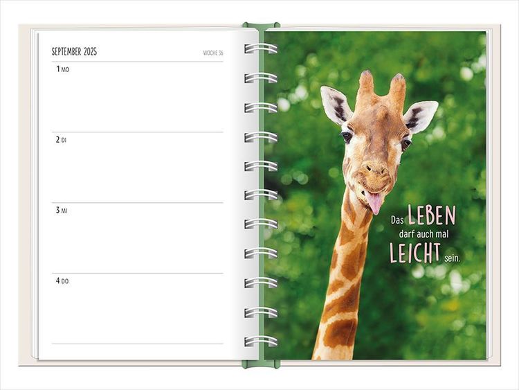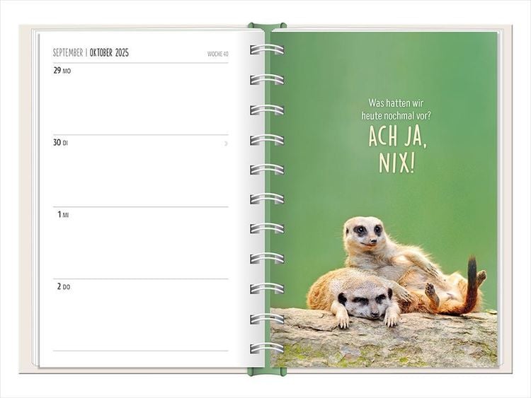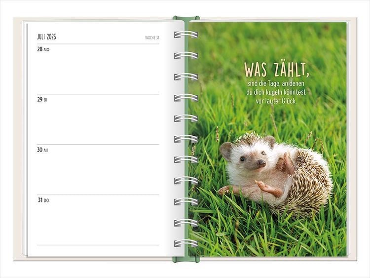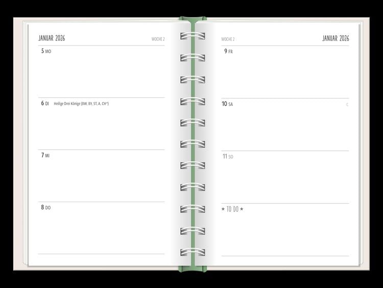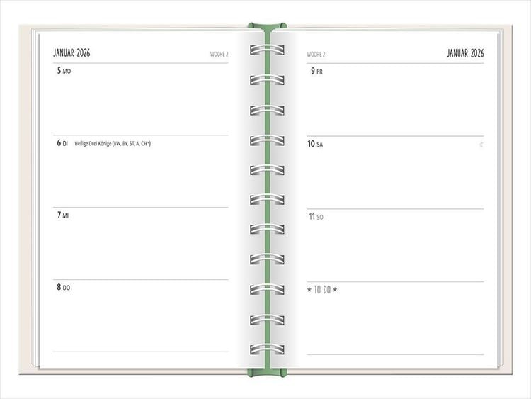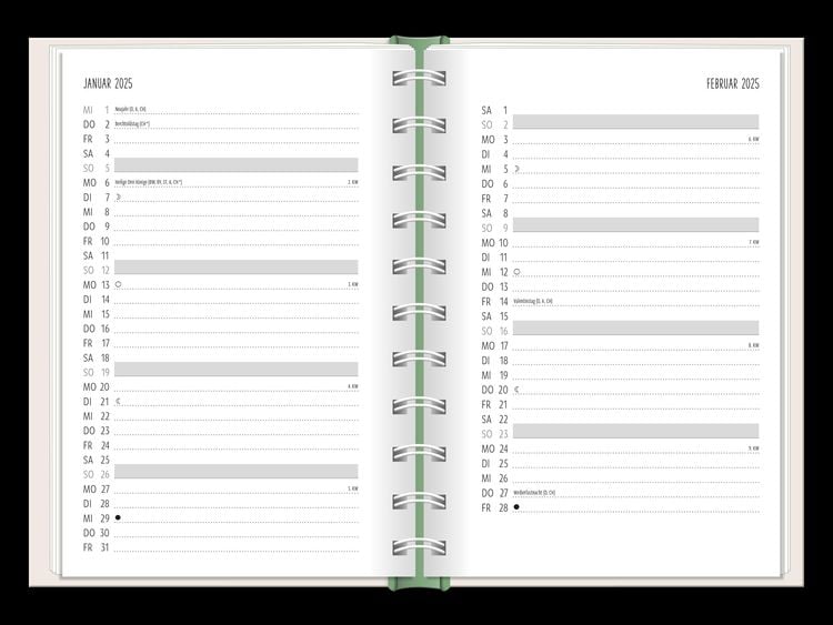 Ein kleiner robuster Terminplaner für 2025 mit vielen Extras Dieser kleine Terminplaner ist ein Multitalent mit naturbelassenem Papier und einem stabilen Hardcover-Umschlag mit feinen Tiefprägungen. Jede Kalenderwoche wird übersichtlich auf einer Doppelseite dargestellt und das extra breite Verschlussgummi hält Zettel, Quittungen und Notizen immer fest zusammen. Zudem bietet eine Falttasche jede Menge zusätzlichen Platz für lose Zettel. Dank einer Jahres- & Monatsvorschau auf einer Seite kannst du das Jahr 2025 mit diesem kleinen Taschenkalender optimal planen. • Kleiner Terminplaner mit hochwertiger Fadenheftung, Hardcover-Umschlag und Satin-Lesezeichen (Format: 10 x 15,5 cm) • 136 Seiten bieten jede Menge Platz für Termine, Notizen und alles andere "Merk-Würdige" • Mit extra Notiz- und To Do-Seiten lässt sich das Jahr 2025 sehr gut organisieren • Schulferien (für D und A) und Feiertage (für D, A und CH) sind eingetragen