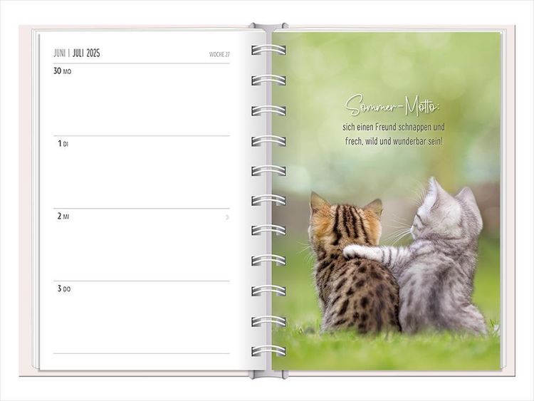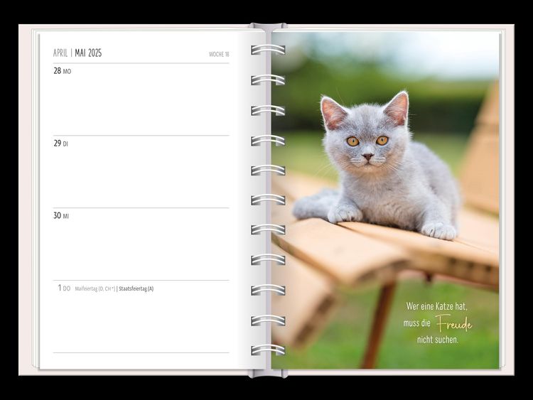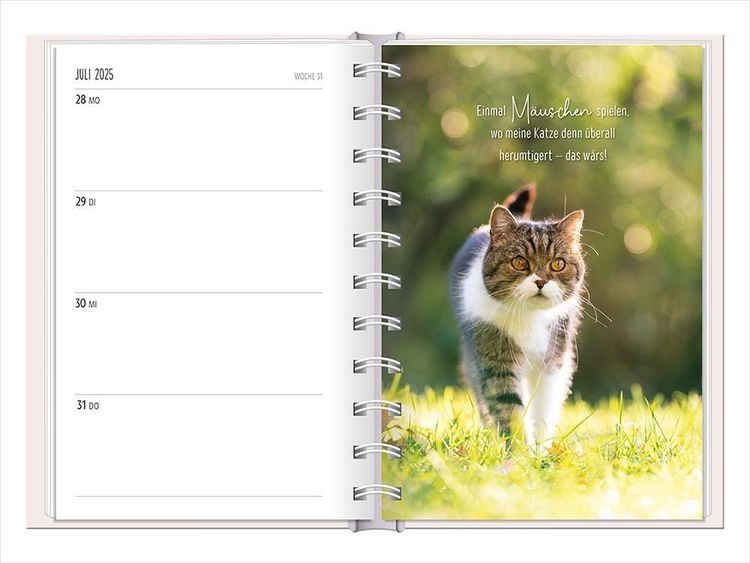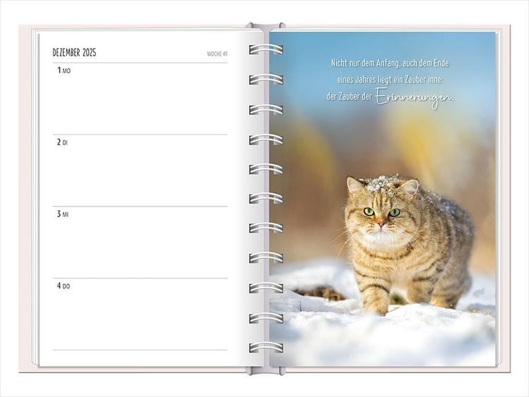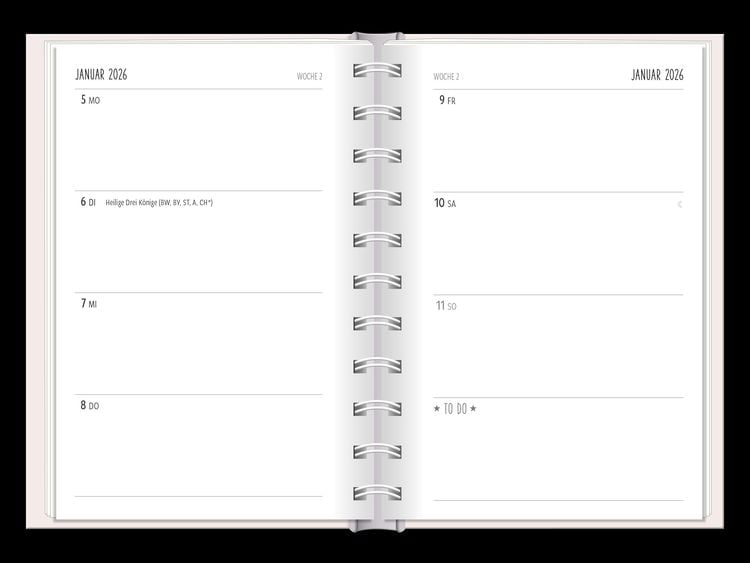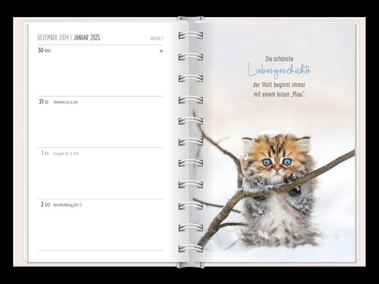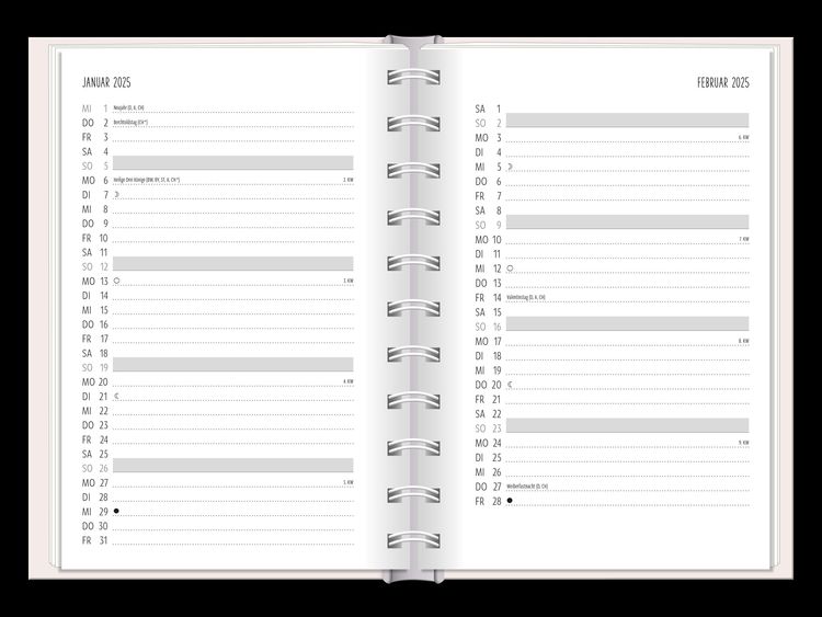 Ein kleiner robuster Terminplaner für 2025 mit vielen Extras Dieser kleine Terminplaner ist ein Multitalent mit naturbelassenem Papier und einem stabilen Hardcover-Umschlag mit feinen Tiefprägungen. Jede Kalenderwoche wird übersichtlich auf einer Doppelseite dargestellt und das extra breite Verschlussgummi hält Zettel, Quittungen und Notizen immer fest zusammen. Zudem bietet eine Falttasche jede Menge zusätzlichen Platz für lose Zettel. Dank einer Jahres- & Monatsvorschau auf einer Seite kannst du das Jahr 2025 mit diesem kleinen Taschenkalender optimal planen. • Kleiner Terminplaner mit hochwertiger Fadenheftung, Hardcover-Umschlag und Satin-Lesezeichen (Format: 10 x 15,5 cm) • 136 Seiten bieten jede Menge Platz für Termine, Notizen und alles andere "Merk-Würdige" • Mit extra Notiz- und To Do-Seiten lässt sich das Jahr 2024 sehr gut organisieren • Schulferien (für D und A) und Feiertage (für D, A und CH) sind eingetragen