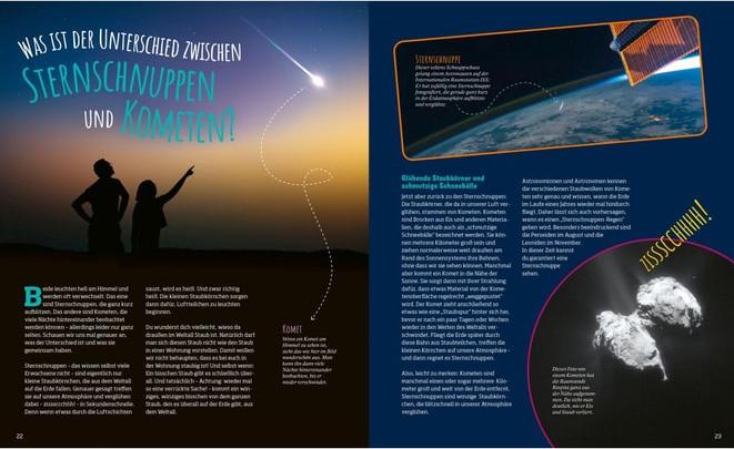 Ist das Universum wirklich mit einem Urknall entstanden? Und wenn ja: Was war davor? Wie viele Sterne hat unsere Milchstraße und können wir dort hinfliegen? Gibt es irgendwo da draußen Außerirdische? Wie wird man Astronautin oder Astronaut? Was sind Schwarze Löcher? Und warum ist Pluto eigentlich kein Planet mehr? Die Kinder gehen auf eine spannende Reise durch den Weltraum. Einige Himmelskörper kann man mit bloßem Auge erkennen, andere werden mühsam erforscht. Und weil alles ganz einfach verständlich erklärt wird, wimmelt es in diesem Buch nicht nur von Sternen, Planeten und Monden, sondern auch von Luftballons,¿Bauklötzen, Wasserpistolen und anderen Alltagsgegenständen. Ob das Universum unendlich groß ist, weiß niemand. Aber es ist unendlich spannend!