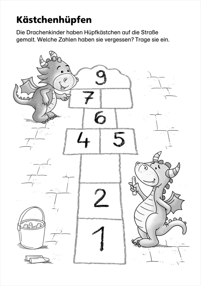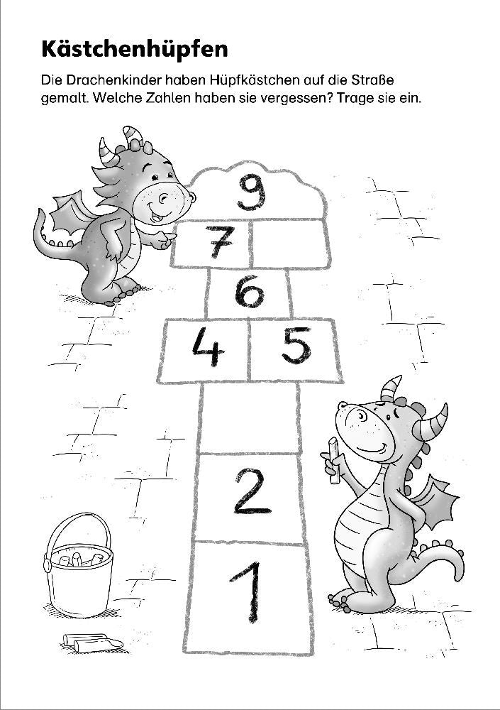Die Zahlen von 1 bis 10 kennenlernen, Äpfel, Schätze und Zwerge zählen, die richtige Menge Erdbeeren einkreisen, alle 6 frechen Frösche aufspüren - die drachenstarken Übungen in diesem praktischen Abreißblock führen Vorschulkinder mit Spaß an die Welt der Mengen und Zahlen heran. Beim Zählen, Suchen und Vergleichen werden die baldigen Schulanfänger von den drei quirligen Drachenfreunden Linus, Jojo und Mats unterstützt. So geht das Zahlenlernen wie von selbst!