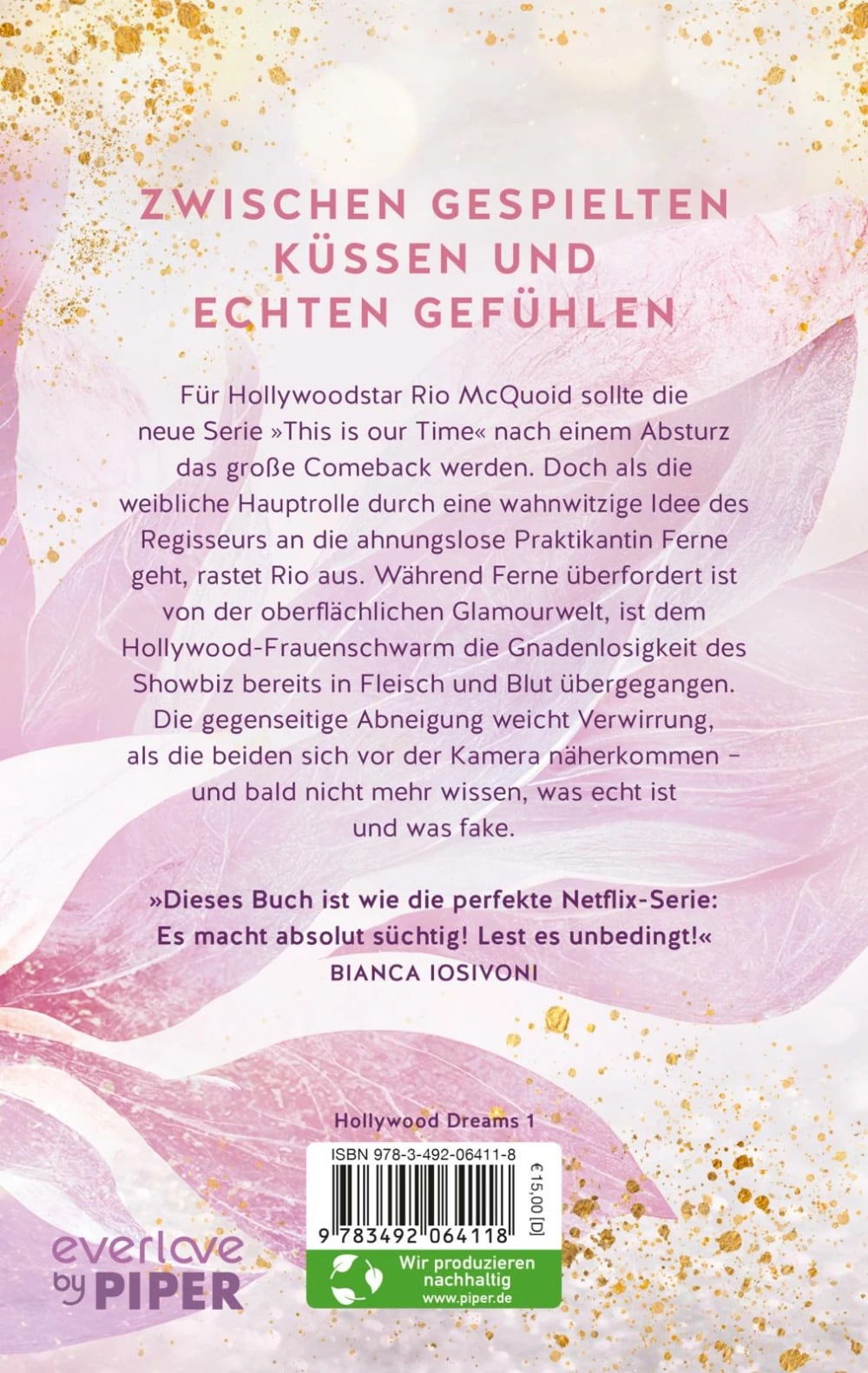 Zwischen gespielten Küssen und echten Gefühlen | »Dieses Buch ist wie die perfekte Netflix-Serie: Es macht absolut süchtig! Lest es unbedingt!« Bianca IosivoniFür Hollywoodstar Rio McQuoid sollte die neue Serie »This is our Time« nach einem Absturz das grosse Comeback werden. Doch als die weibliche Hauptrolle durch eine wahnwitzige Idee des Regisseurs an die ahnungslose Praktikantin Ferne geht, rastet Rio aus. Während Ferne überfordert ist von der oberflächlichen Glamourwelt, ist dem Hollywood-Frauenschwarm die Gnadenlosigkeit des Showbiz bereits in Fleisch und Blut übergegangen. Die gegenseitige Abneigung weicht Verwirrung, als die beiden sich vor der Kamera näherkommen - und sie bald nicht mehr wissen, was echt ist und was fake.