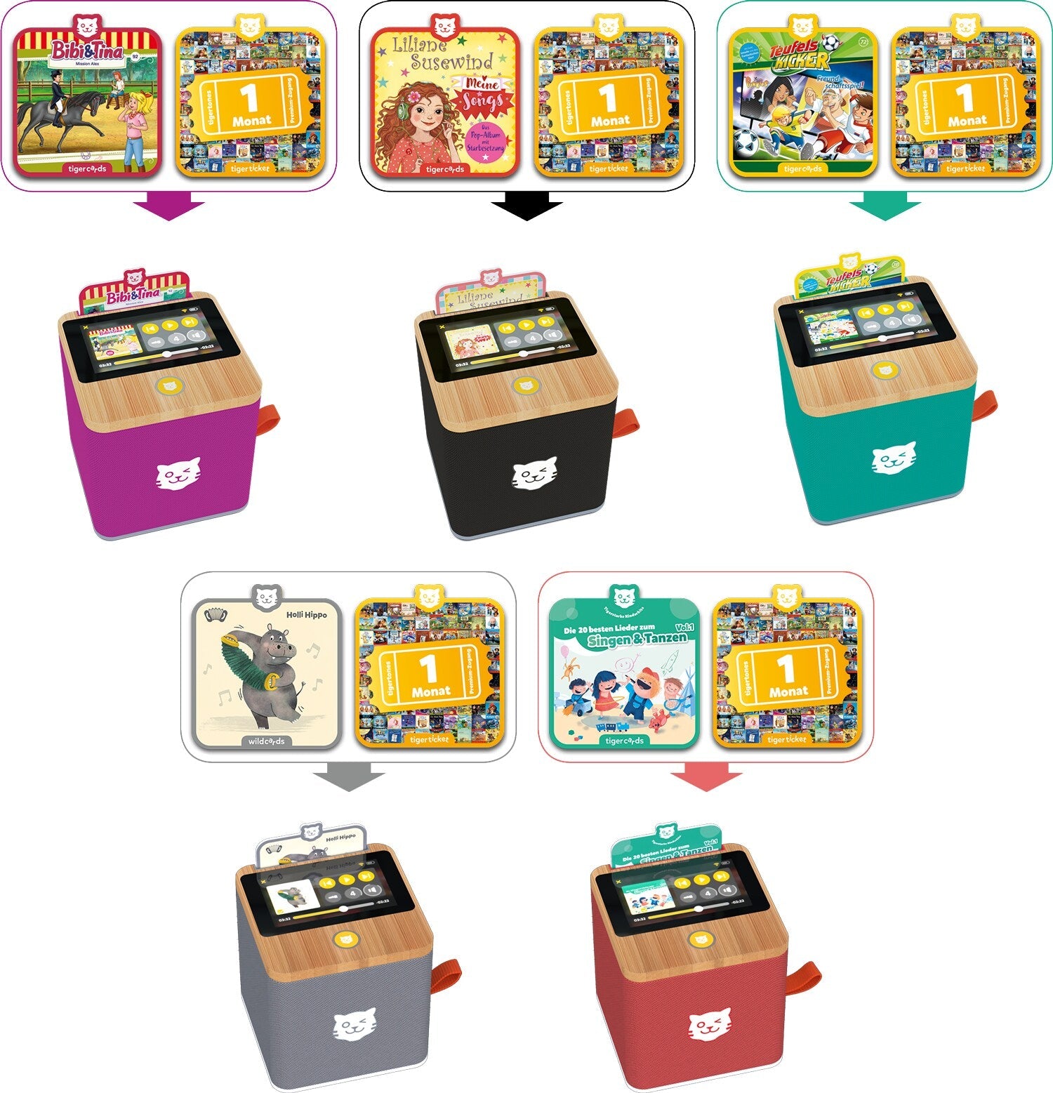 Eine Hörbox für Kinder : Mit kinderfreundlichem Streaming-Dienst und Touchdisplay schenkt die tigerbox touch Kindern ein einzigartiges Hörerlebnis durch eine vielfältige Auswahl in einer grossen Hörspielwelt. Das Abspielen wird zum Kinderspiel und im Nu erklingen die tollsten Hörspiele und Lieder für Kids zwischen 4 und 12 Jahren - ohne Werbung, ohne versteckte Kosten und ohne das Smartphone der Eltern. Die tigessbox touch bietet gleich drei Wege zum maximalen Hörspass: Die tigertickets sind die Eintrittskarten in die grosse Online Hörspielwelt zum Streamen mit über 10.000 Titeln. Mit den tigercards sind alle Lieblingsgeschichten sofort griffbereit. Einfach einschieben, schon erklingen die schönsten Geschichten wie durch Zauberei. Die wildcards bieten Platz für selbst aufgenommene Geschichten, eigene mp3 Dateien oder Hörspiele aus der tigertones-Mediathek.