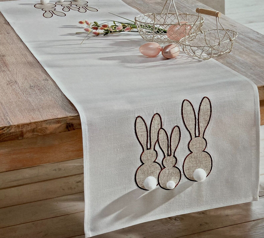 Tolles Design mit Osterhasensilhouetten, ein toller Effekt sind die weissen, angenähten "Bommel"