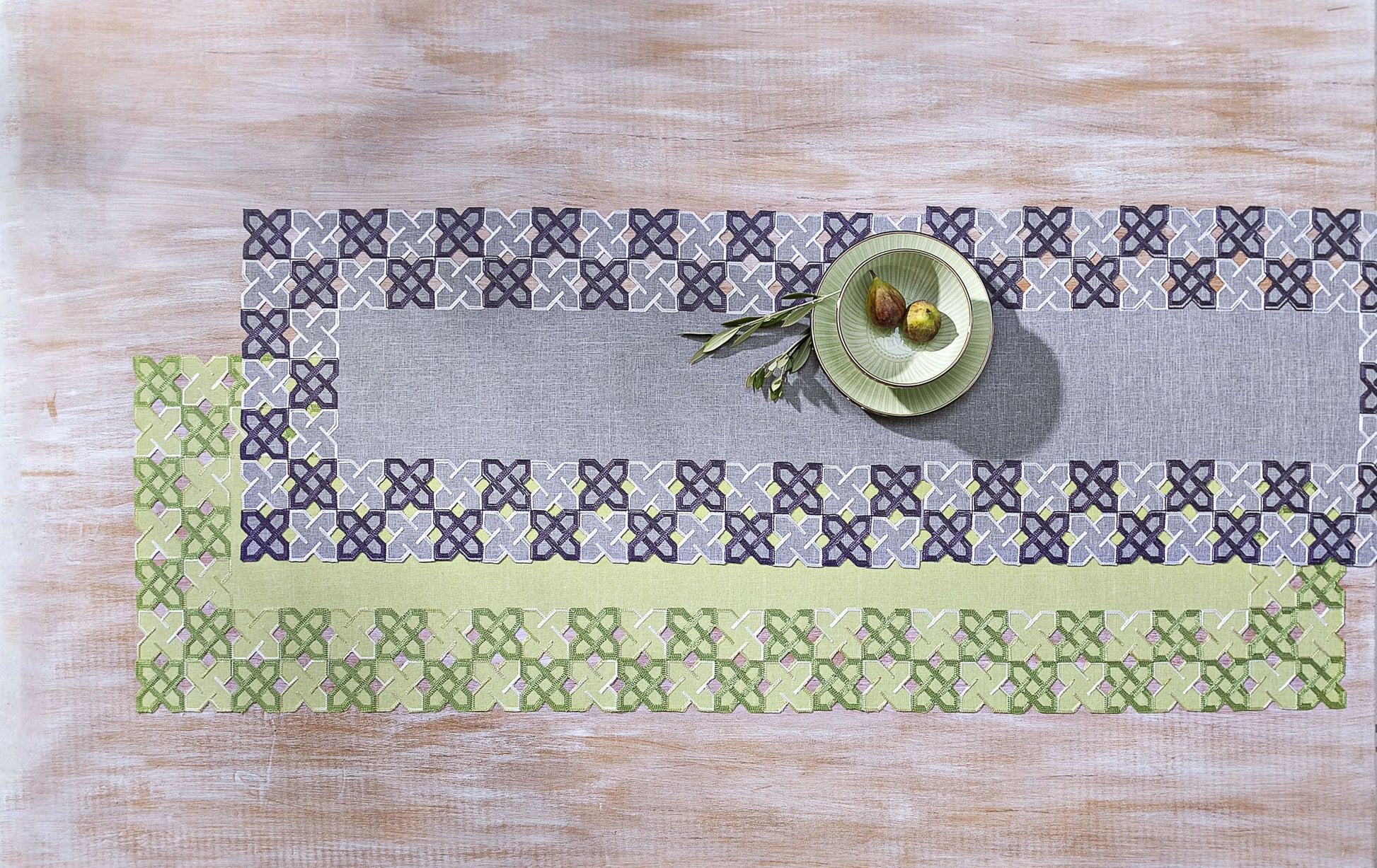 Mit dem grauen Tischläufer mit Kurbelstickerei sorgen Sie für einen stilvollen Hingucker bei Tisch. Gleich hier online bestellen!