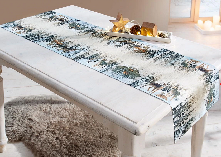 Tischläufer "Rehfamilie im Winterwald" (40 x 140 cm)