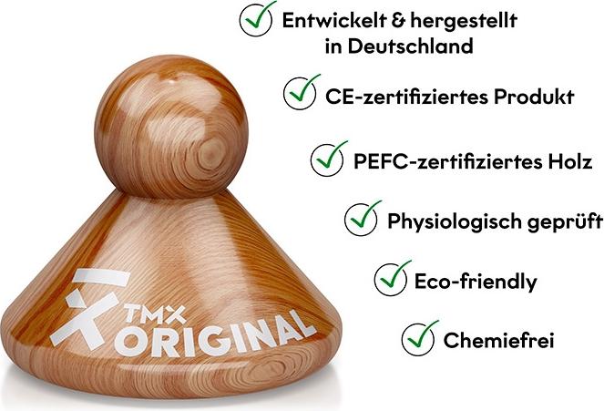 Das TMX Trigger Original hilft bei Blockaden und Verspannungen, welche am ganzen Körper in Schmerzen resultieren.Die TMX® Trigger sind auf Basis jahrelanger Erfahrung und Wissenschaft entwickelt worden. Die Bedeutung eines schmerzfreien Körpers fällt uns meistens erst dann auf, wenn die Schmerzen da sind. Schmerzen können durch verdickte Triggerpunkte im ganzen Körper entstehen. Verdickte Triggerpunkte entstehen unter anderem durch Fehlbelastungen, ständiges Sitzen im Büro, hartes Training oder verklebte Faszien. Durch die Eigenbehandlung mit dem TMX® Trigger können Triggerpunkte vorgebeugt und gelöst werden. Durch langanhaltende und tiefe Akupressur wirken die TMX® Trigger muskulären Verspannungen und Blockaden entgegen.Zertifiziert als medizinisches Produkt, physiologisch geprüft, eco friendly und chemiefrei, hergestellt in Deutschland in der Lebenshilfe. Das Produkt beinhaltet dem innovativen Gel Sticky-Pad, welcher ermöglicht, das Trigger an beinah jede Oberfläche zu befestigen.