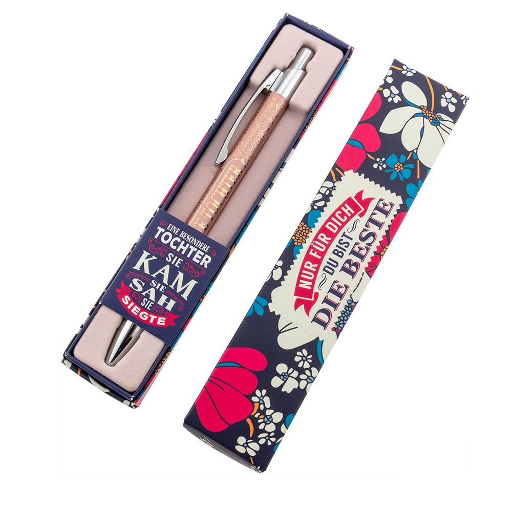 Zu jedem Anlass ein hochwertiger Kugelschreiber eine aufmerksame Geschenkidee – vor allem, wenn er mit dem Namen des Beschenkten personalisiert ist. Unsere ansprechende Auswahl an Kulis, in edlem Geschenketui mit originellem Spruch, wird stilbewusste Ladies und echte Kerle begeistern. Ausdrucksstarke, maskuline Designs mit insgesamt 50 Männernamen, feminine Muster für die 50 Frauennamen und 20 allgemeine Titel machen das neue Sortiment an kreativ gestalteten H&H Kugelschreibern aus. Die Kulis liegen angenehm in der Hand und sorgen für ein elegantes Schriftbild.