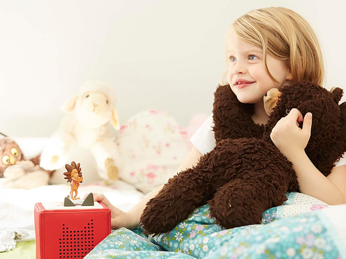 Steige ein in das neue Hör- und Spielerlebnis - mit dem Tonies Starterset. Einfach auspacken und sofort loslegen! Das steckt alles drin im Karton: Eine Toniebox in deiner gewählten Farbe, einen exklusiven Kreativ Tonie in der gewählten Farbe, eine Ladestation zum Aufladen deines Toniebox-Akkus und eine leicht verständliche Bedienungsanleitung. Um das Tonies Audiosystem zu nutzen, brauchst du ein 2,4 GHz b/g/n WLAN mit Internetzugang sowie ein internetfähiges Endgerät (Smartphone, Tablet oder PC) für die Erstinbetriebnahme. Um Kreativ-Tonies bespielen zu können, brauchst du zudem ein Toniecloud Kundenkonto. Dort verwaltest du die Inhalte, die du mit deinem Kreativ-Tonie verknüpfen möchtest. Die Registrierung für dein Kundenkonto ist kostenlos. Last but not least kannst du die kostenlose Smartphone App herunterladen (erhältlich für iOS ab Version 9 und Android ab Version 4.4 (KitKat)). Mit dieser App kannst du deine eigenen Sprachaufnahmen aufzeichnen und deinen Kreativ-Tonies zuweisen. Auch Freunde oder Verwandte kannst du dazu einladen, Inhalte für deine Tonies aufzunehmen. Du hast dabei stets die Kontrolle, wer auf welchen Tonie zugreifen kann. Dank dem Flash-Speicher hat dein Tonie Platz für bis zu 400 Stunden Hörinhalte. Die Akku-Laufzeit beträgt 7 Stunden.