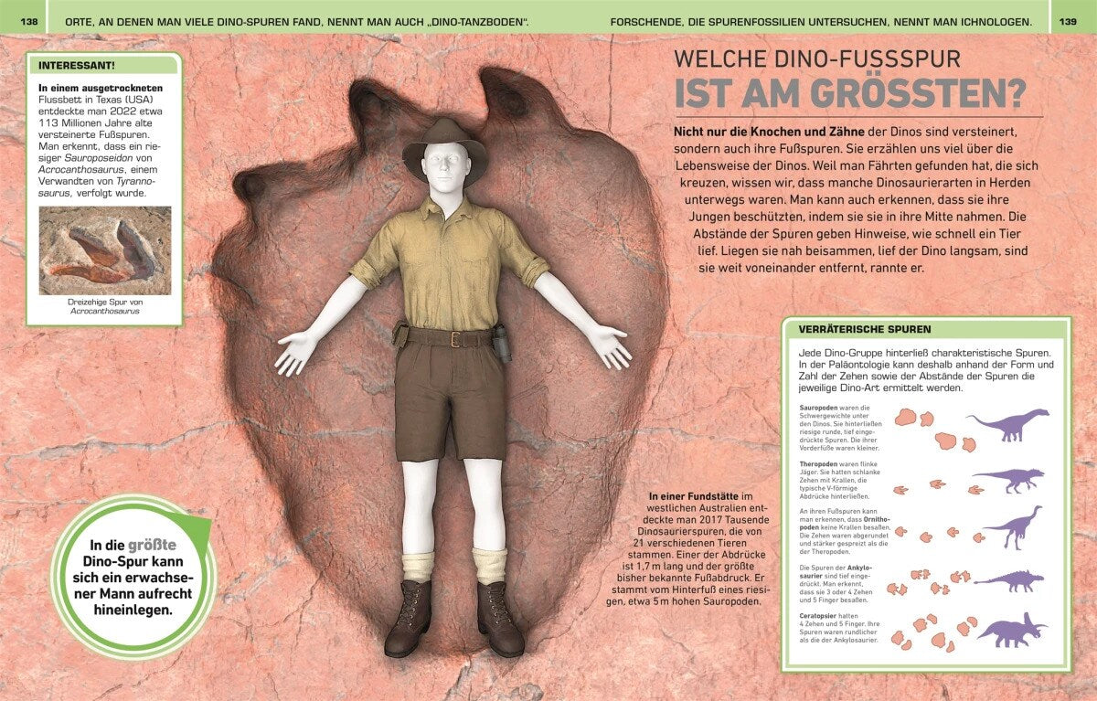 Rekordverdächtige Stärken und Geschwindigkeiten, kuriose Behausungen, eigenartige Verhaltensweisen: Das und noch vieles mehr wird auf coolen Faktenseiten und in 5 Kapiteln faszinierend veranschaulicht. Zahlreiche Infografiken & Statistiken stillen den Hunger nach weiteren verblüffenden Dino-Fakten und schlagen kleine und grosse Fans der Urzeitriesen in ihren Bann!