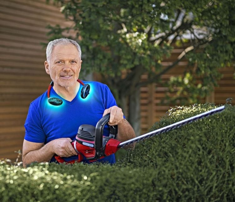 Erfrischende Kühle daheim & unterwegs Dieser Ventilator begleitet Sie auf Schritt und Tritt An heißen Sommertagen einfach um den Hals hängen Kabellos und mobil dank Akkubetrieb Perfekt für Arbeit und Freizeit Inklusive Aroma-Duftöl Kabellos und mit Akkubetrieb für maximale Bewegungsfreiheit. Damit bewahren Sie an heißen Sommertagen immer einen kühlen Kopf. Ganz gleich, ob Sie am Essen kochen, am Schreibtisch sitzen, in Haus und Garten arbeiten oder einfach unter Hitzewallungen leiden. Der tragbare Umhängeventilator sorgt stets für eine frische Brise, ist leicht zu tragen und einfach zu bedienen. Tragbarer Umhängeventilator: Diese kleine Klimaanlage tragen Sie einfach mit sich! Stets beide Hände frei, z. B. zum Arbeiten Ventilatorköpfe um 360° drehbar für optimale Ausrichtung 3 Geschwindigkeitstufen 3.000 mAh Akku Laufzeit pro Akkuladung: ca. 2 6 Std. USB-Ladekabel Licht- und Farbwechsel-Funktion zuschaltbar Auch als Tischventilator verwendbar Material: Kunststoff (ABS) Düftöl hinzufügbar (1 Beutel inklusive) Maße: 31 x 19 cm. Bestellen Sie den tragbaren Umhängeventilator gleich online.
