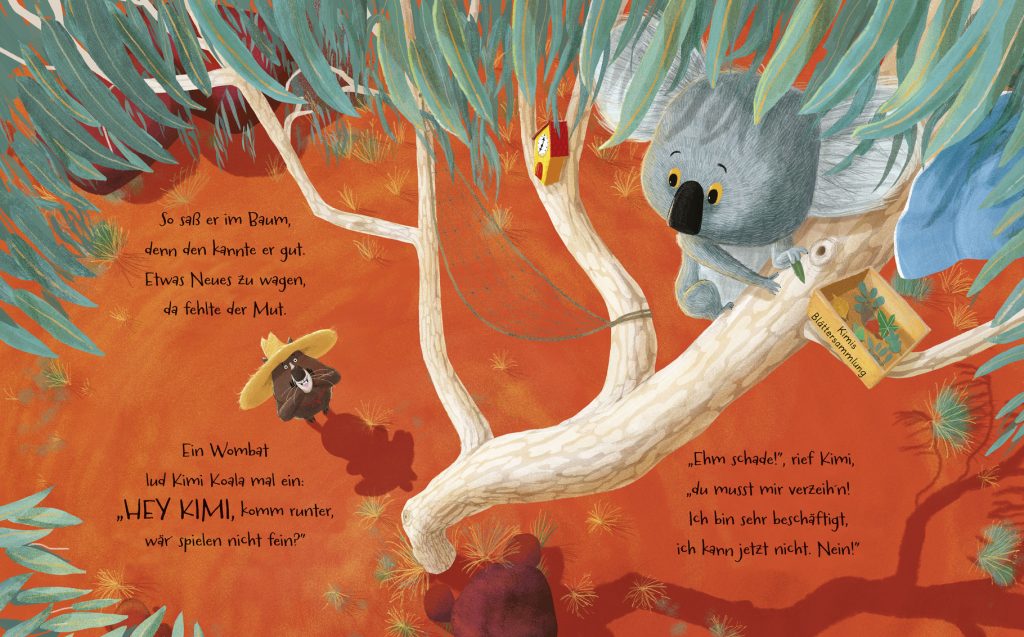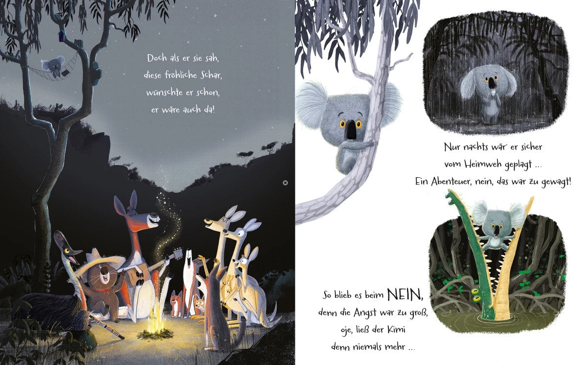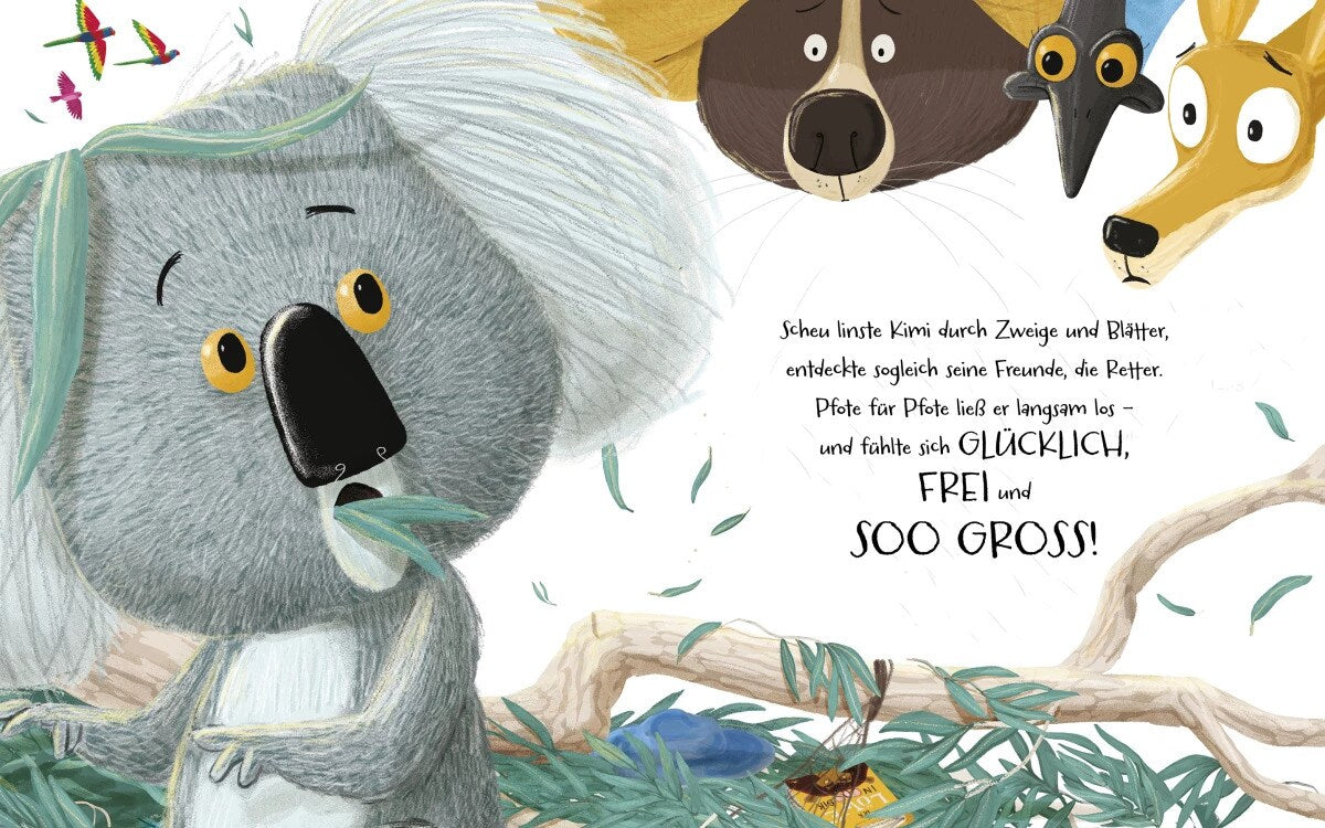 Für alle Fans von Der Löwe in dir  Kimi Koala ist der heimliche König des Dschungels: König Bewegungslos! Denn seinen geliebten Eukalyptusbaum hat er noch nie verlassen, denn hinter jeder Veränderung vermutet er eine Gefahr. Doch dann wird sein gesamtes Leben auf den Kopf gestellt - und Kimi erkennt, dass etwas Neues auch durchaus schön sein kann...