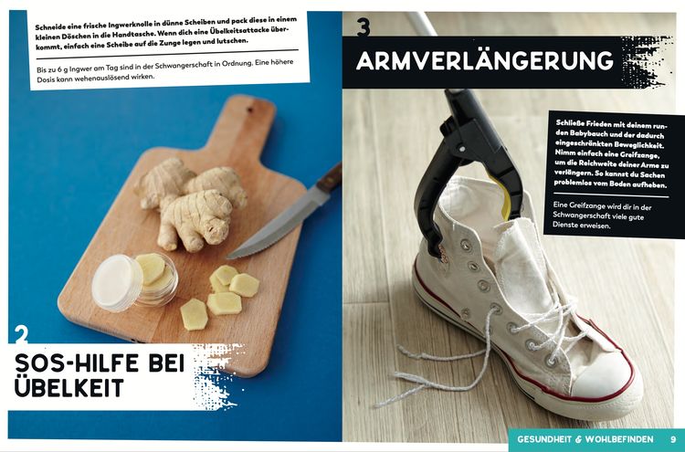Keine Lust auf gewöhnliche Schwangerschaftsratgeber? Hier erfährst du in 111 außergewöhnlichen Lifehacks wie du den perfekten Mama-Cocktail mischt, während der Schwangerschaft auch mal ganz tief Luft holen kannst, unterwegs ohne Unfälle wie ein Profi die Windel wechselst und Klopapier vor den Kids sicherst. Ob im Bereich Gesundheit und Wohlbefinden, Reinigen und Organisieren, Essen und Trinken, Draußen und Unterwegs oder Spaß und Spiel: Bleib entspannt – und hack it! Neu gestaltete, überarbeitete und gekürzte Ausgabe des erfolgreichen Bands „Trick 17 Schwangerschaft und Baby“, ISBN 978-3-7724-7784-3.