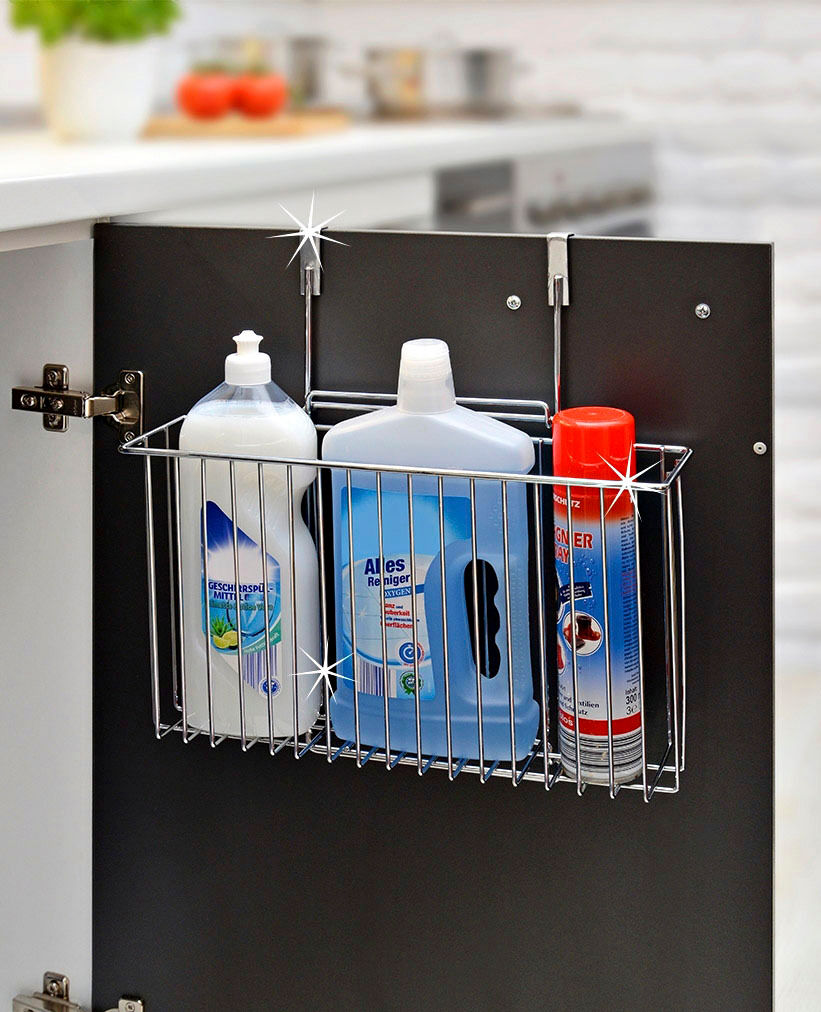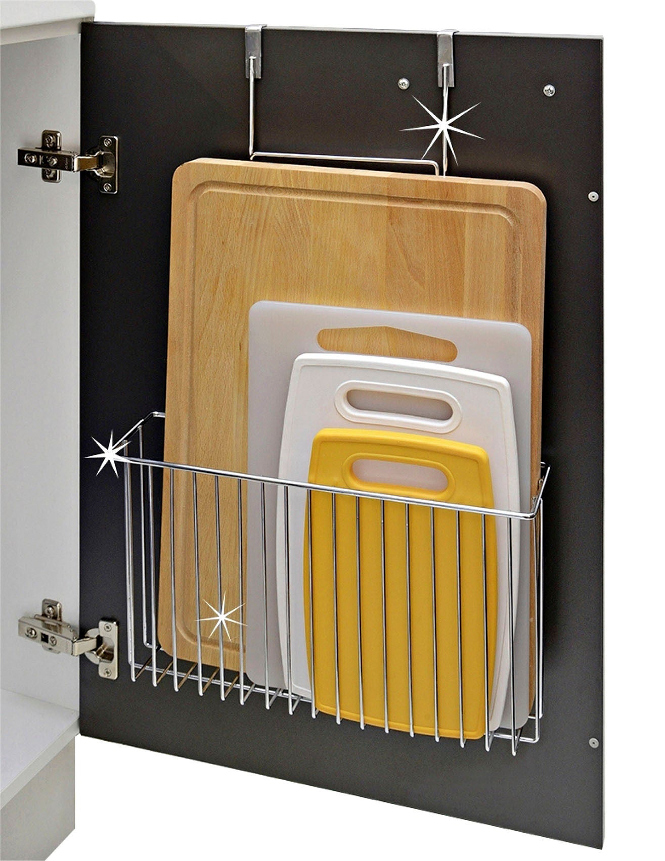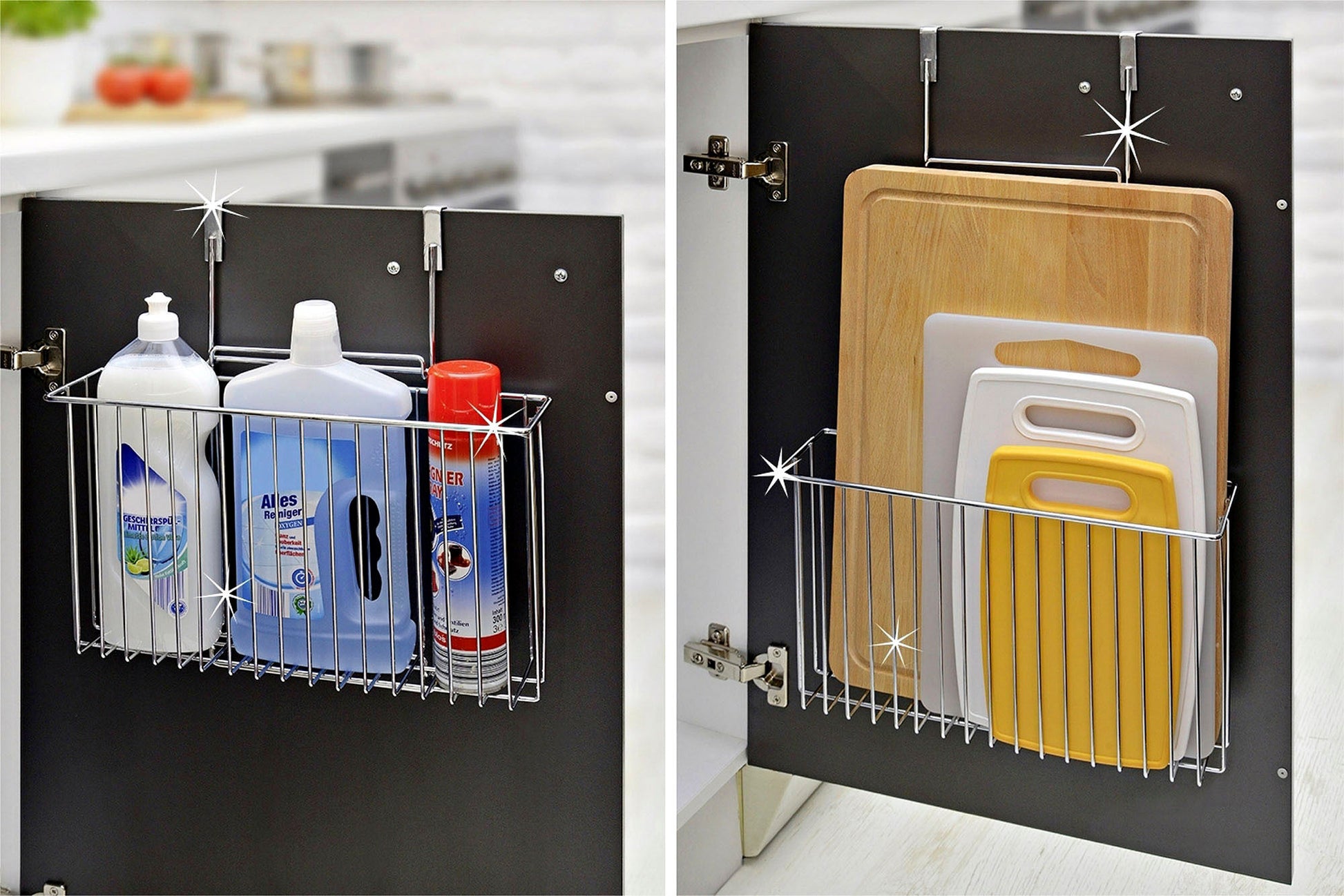 Über praktische Aufbewahrungsmöglichkeiten in der Küche oder auch im Bad dürfte sich ein jeder freuen, oder? Der Tür-Einhängekorb "Flexi" ist dafür eine tolle Option. An zwei Haken wird er an Schranktüren eingehängt und bietet Platz für grosse Schneidebretter, Backbleche, Kochbücher, Putzmittel oder auch Bodylotion, Duschgel etc.