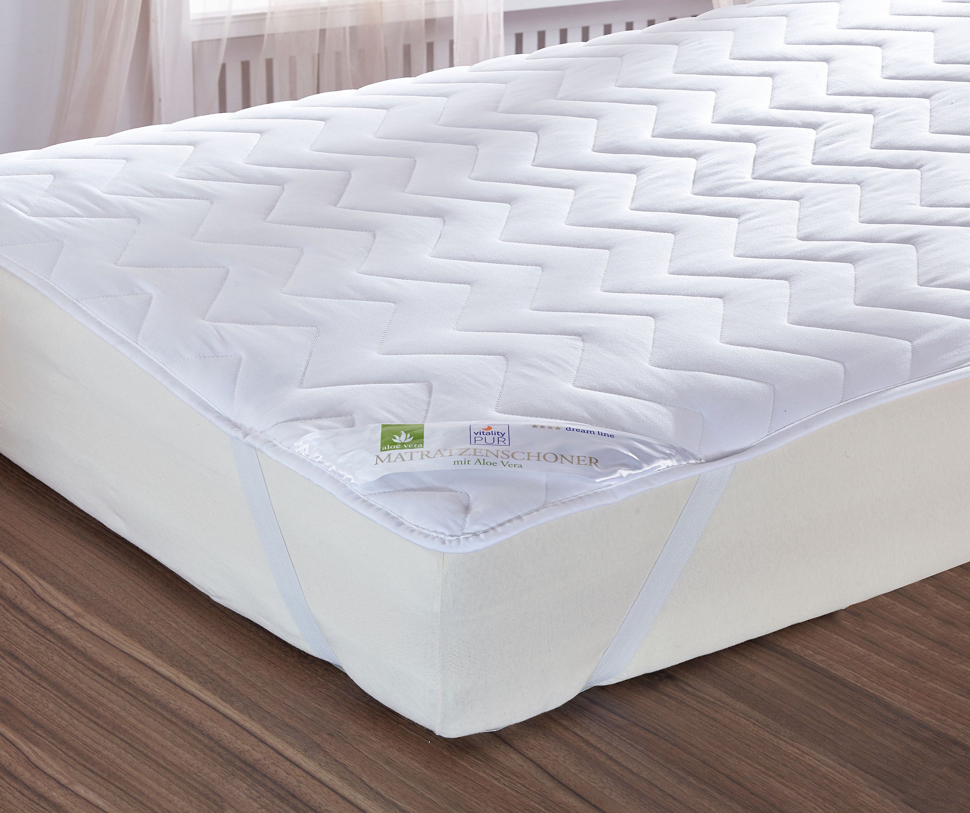 Das Unterbett Aloe Vera ist supersoft und extra hygienisch. Es lässt sich ganz einfach befestigen mit den Spanngummis an den vier Ecken. Der Mikrofaser-Bezug ist mit echter Aloe Vera veredelt und sorgt so für ein gesundes Schlafklima. Die weiche Hohlfaser-Füllung mit Wellen-Steppung macht jedes Bett angenehm weich. Schützt aussserdem die Matratze vor Abnützung und Verunreinigung.