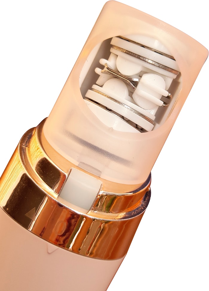 Velform EpilWiz ist schnell und einfach zu bedienen. Es zieht Haare wie ein Magnet an, sodass Sie nicht einmal einen Spiegel brauchen. Das diskrete Lippenstift-Design ermöglicht überall schnelle Ausbesserungen. Und mit dem eingebauten LED-Licht entdecken Sie jedes Härchen.