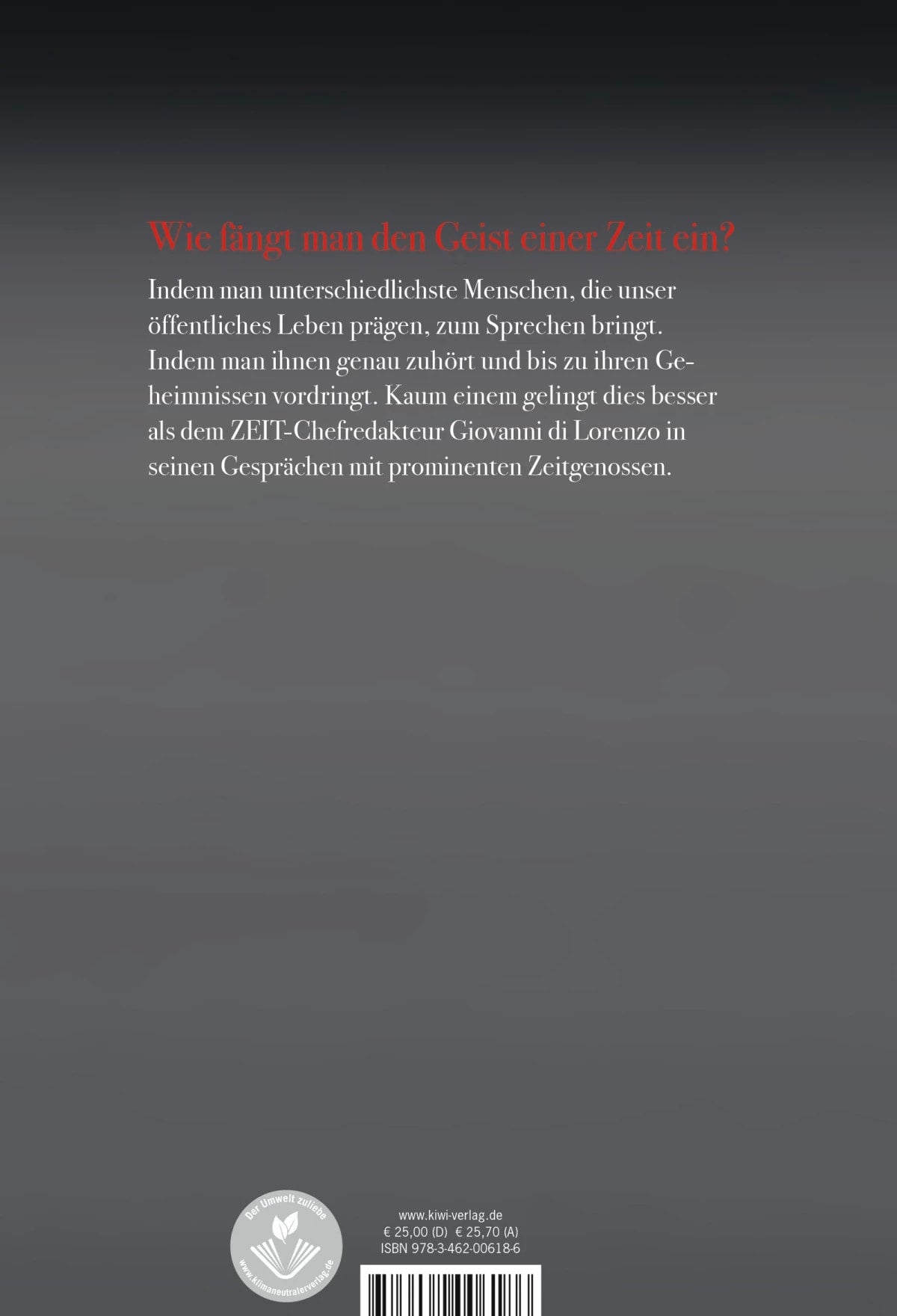 Lesend tauchen wir ein in die Überzeugungen und Biografien von Menschen, die auf unterschiedliche Weise die Gegenwart geprägt haben. Giovanni di Lorenzo schafft dabei eine Atmosphäre seltener Nähe und Offenheit, scheut aber nie die Konfrontation. Und entlockt so auch ausgebufften Medienprofis Dinge, die sie vorher öffentlich nicht gesagt haben.