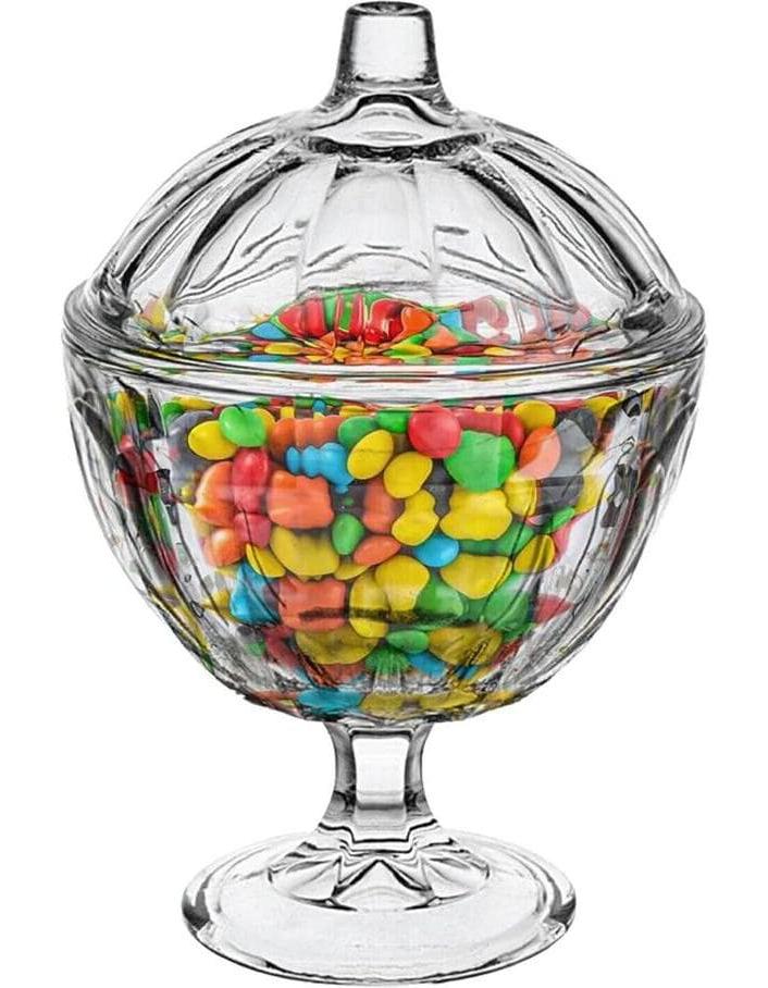 VIELSEITIGE AUFBEWAHRUNGSLÖSUNG - Ein geripptes Glasgefäß mit einem einzigartigen Design, das eine vielseitige Aufbewahrung für ein Sortiment von Süßigkeiten und Pralinen bietet. Ideal für den täglichen Gebrauch, ob auf der Küchenarbeitsplatte, auf dem Tisch oder auf dem Schreibtisch, dieses Glas sorgt dafür, dass Ihre Leckereien sicher aufbewahrt werden und ihr köstlicher Geschmack erhalten bleibt.