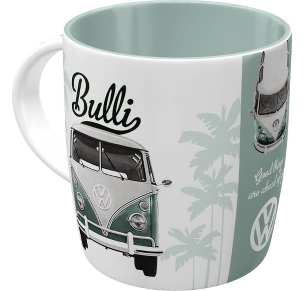 Ansprechende, hochwertige bedruckte und stabile Keramiktasse mit einem Fassungsvermögen von 330 ml. Die Innenseite der Tasse ist farblich an das tolle Retro-Motiv angepasst. Für entspannten Trinkgenuss sorgt die schöne abgerundete Form und ein praktischer großer Henkel.