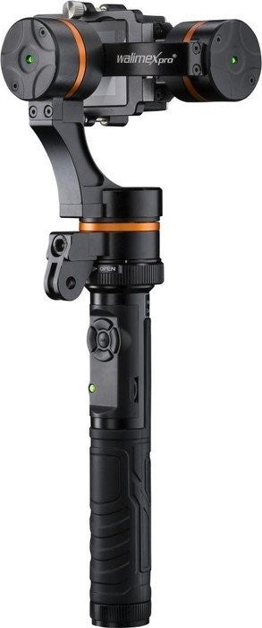 Verwacklungsfreie Action-Aufnahmen mit der GoPro das ermöglicht der neue walimex pro Waver! Der 3-Achs-Gimbal stabilisiert Ihre Action Cam und gleicht Verwacklungen komplett aus. Ob beim Biken, im Urlaub, am Auto oder Motorrad dank GoPro Standard-Befestigung und ¼ Zoll Gewindebohrung sind die Einsatzmöglichkeiten äußerst vielfältig. Eines der Keyfeatures ist das 1,2 m lange Verlängerungskabel, das zwischen Handgriff und Gimbal geschalten werden kann. Damit können Sie den Gimbal steuern ohne ihn direkt in der Hand zu halten, z.B. als Beifahrer bei Befestigung des Gimbals am Auto oder an einem Stativ aus großer Höhe. Die GoPro Standard-Befestigung ist wie der gesamte Gimbal aus langlebigem und robustem Aluminium gefertigt. Der walimex pro Waver eignet sich für die Modelle GoPro 3, GoPro 4.