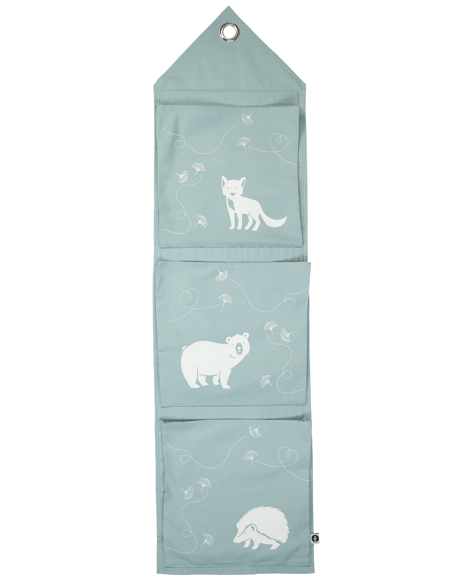 Eine schicke und unkomplizierte Aufbewahrungsidee für das Kinderzimmer: Der Wandorganizer „Trio“ von tausendkind hat viel Platz für Dinge, die der Nachwuchs täglich in Gebrauch hat: Spiel- und Bastelsachen, Plüschtiere, Bücher … Der praktische Ordnungshelfer aus strapzierfähiger Baumwolle lässt sich ganz einfach an der Wand aufhängen und sieht mit den Tierprints und dem verspieltem Ginko-Muster auch noch richtig niedlich aus.