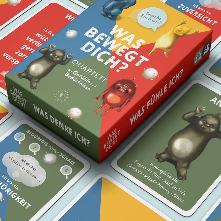 Dieses Kartenspiel möchte eine Gefühlsbrücke bauen. Groß und Klein dazu einladen, sich über Gefühle und Bedürfnisse auszutauschen. Was bewegt dich? Manchmal ist es ganz schön schwierig, unser Gefühlschaos zu entwirren, unsere körperlichen Reaktionen – unsere Emotionen – richtig zu deuten. Auch wenn manche Gefühle unangenehm sind, sie sind unsere Botschafter – unser "inneres Team" und wollen gefühlt werden. Unsere Gefühle zeigen uns, was wir brauchen, um uns wieder stimmig und im Einklang mit uns und unserer Umgebung zu fühlen. Hinter unangenehmen Gefühlen verstecken sich unerfüllte Bedürfnisse. Diese aufzuspüren, verstehen und benennen zu können, erfordert ein bewusstes Wahrnehmen und achtsames Erforschen unserer Innenwelt. Und dabei möchte dieses Kartenspiel behilflich sein. Du findest spielerisch heraus, was dir fehlt – was du brauchst, wenn eine unangenehme Emotion aufkommt. Wie du deine Gefühle und die dahinterliegenden Bedürfnisse kennenlernen und mitteilen kannst. Es hilft dir dabei, begrenzende und verurteilende Gedanken zu hinterfragen und zeigt dir stattdessen gesündere und liebevollere Glaubenssätze auf.