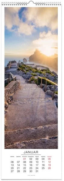 Entdecken Sie mit diesem einzigartigen Panoramakalender 2025 jeden Monat neue inspirierende Fotomotive, die Sie dazu anregen, neue Wege zu gehen und neue Perspektiven im Leben zu entdecken. Mal schlängelt sich ein Bergweg hinauf zu einer Kapelle, mal führt er hinunter zum Meer und lässt uns einen fantastischen Sonnenuntergang erleben ... Mit einer Größe von 100 x 34 cm ist dieser Wandkalender ein echter Blickfang an Ihrer Wand. Das großzügige Kalendarium bietet bietet jeden Monat einen guten Überblick über die Wochen- und Feiertage. Die stabile Spiralbindung sorgt für eine einfache Handhabung und Haltbarkeit des Kalenders.