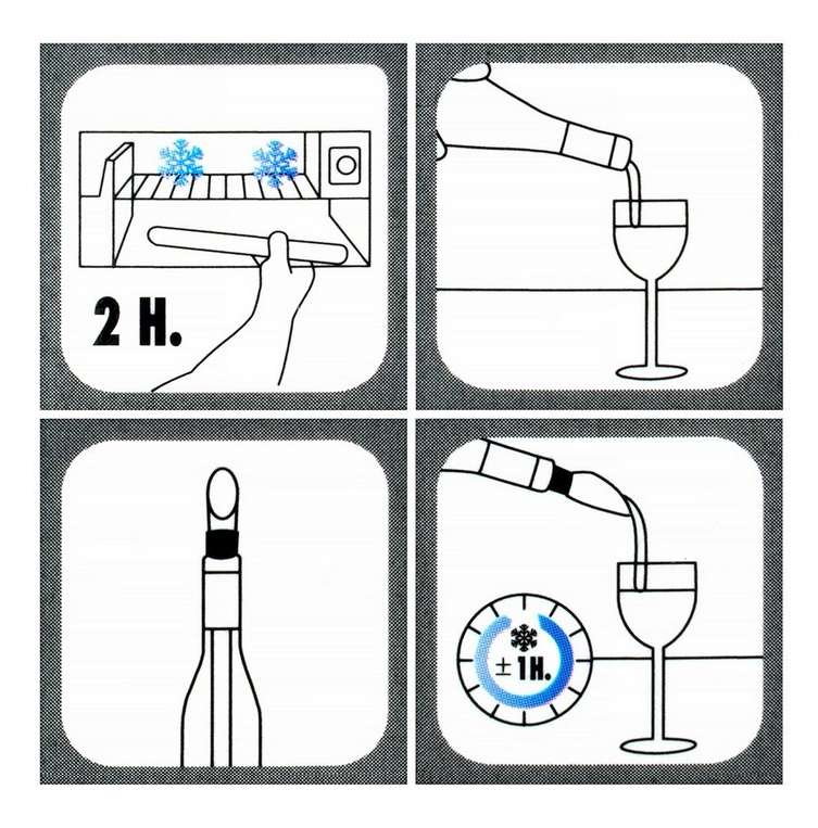 Das Set besteht aus einem Ausgiesser und einem Kühleinsatz, die zusammen für Komfort, Funktionalität und Ästhetik beim Servieren sorgen. Der Kühleinsatz hält den Wein kühl, ohne dass Eis benötigt wird.