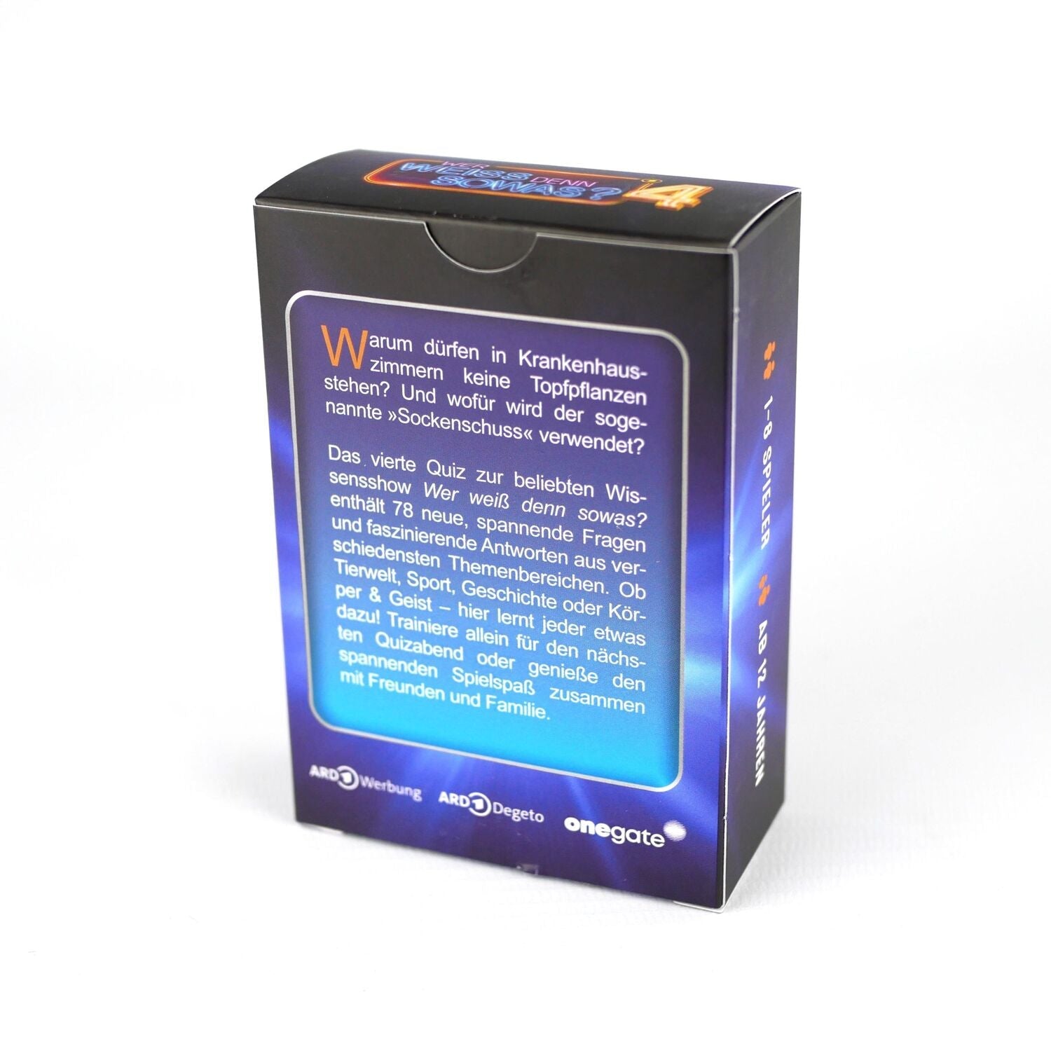 Im vierten Teil des Kartenspiels zur erfolgreichen ARD-Wissensshow finden sich wieder viele neue spannende Fragen aus zwölf Kategorien. Wer kennt sich am besten im Bereich Ernährung aus? Wer tippt auf die richtigen Antworten, wenn es um die Tierwelt geht? Und wer weiss am meisten über historische Begebenheiten? Testet euer Wissen bei einem spannenden Quizabend!