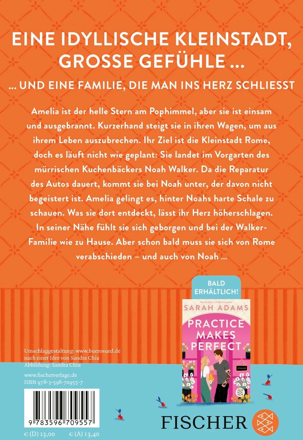 Eine erfolgreiche Popsängerin, ein grummeliger Kleinstadt-Bäcker und romantische Verwicklungen Amelia ist der helle Stern am Pophimmel, aber sie ist einsam und ausgebrannt. Kurzerhand steigt sie in ihren Wagen, um aus ihrem Leben auszubrechen. Ihr Ziel ist die Kleinstadt Rome, doch es läuft nicht ganz wie geplant: Sie landet im Vorgarten des mürrischen Kuchenbäckers Noah Walker. Da die Reparatur des Autos dauert, kommt sie in Noahs Gästezimmer unter, der nicht allzu begeistert davon ist. Doch mit jedem neuen Tag gelingt es Amelia mehr, hinter Noahs harte Schale zu schauen. Was sie dort entdeckt, lässt ihr Herz höherschlagen. In seiner Nähe fühlt sie sich geborgen und bei der herzlichen Walker-Familie wie zu Hause. Aber Amelias Auszeit endet bald. Dann muss sie sich von Rome verabschieden - und auch von Noah ...