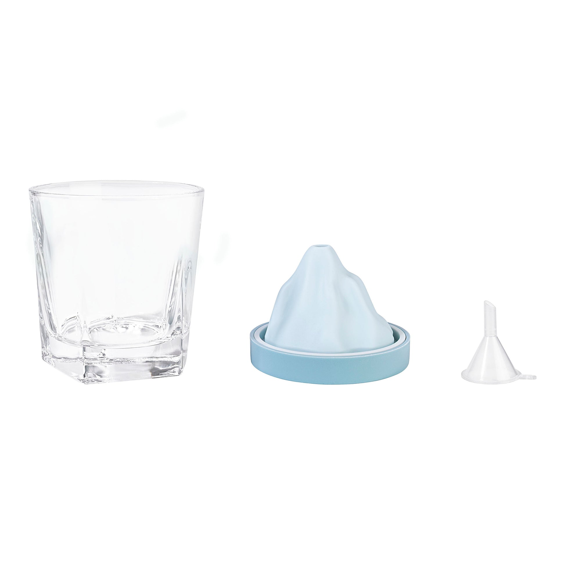 Wenn der Whiskey goldgelb über die eisigen Felsen rinnt … Dann sieht das nicht nur sehr verlockend aus, sondern Ihr Getränk hat auch gleich die richtige Temperatur. Mit diesem Set lässt sich dieser ansprechende Trinkgenuss zuhause zubereiten. Mit dabei ist ein breites Whiskeyglas und eine große Silikonform, in der sich der passende Eiswürfel in Gestalt eines Eisberges formen lässt.