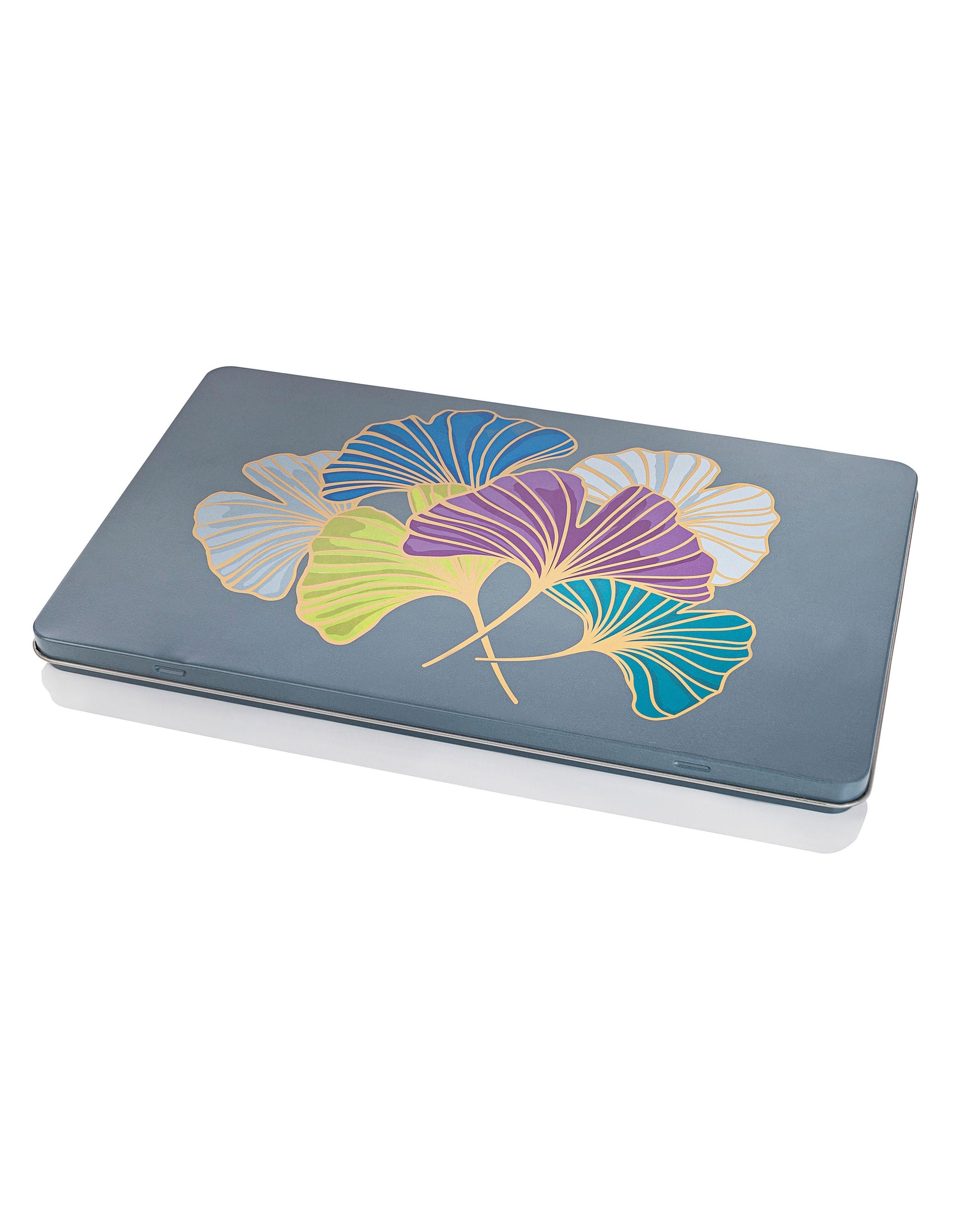- In edlem Metall-Etui mit Gingko-Motiv