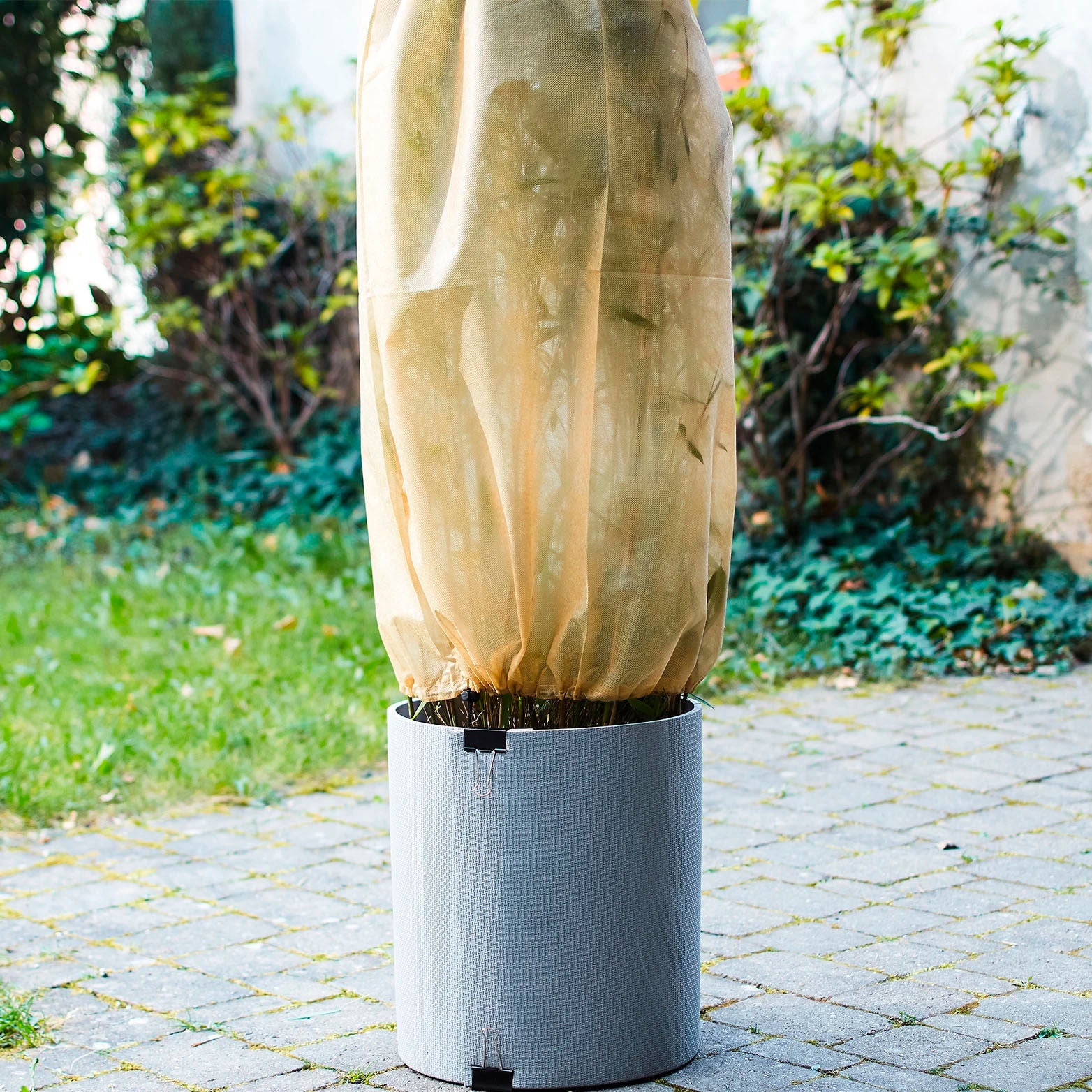 Wenn die kalte Jahreszeit kommt, ist diese Winter-Kälteschutzmatte für Ihre Pflanzen Gold wert. So schützen Sie Ihre Topf- und Kübelpflanzen auf Balkon & Terrasse vor starker Kälte! Einfach um die Töpfe wickeln und schon sind die Pflanzen geschützt. Mit den beiliegenden Befestigungsclips fixieren – fertig.