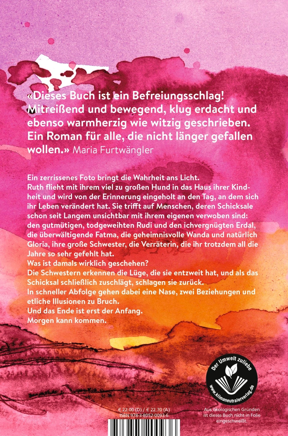 Ein zerrissenes Foto bringt die Wahrheit ans Licht. Es ist die Momentaufnahme eines Verrats, der vier Schicksale miteinander verbindet, sie zusammenführt und mit den unbequemen Fragen der Lebensmitte konfrontiert: loslassen oder festhalten? Wer bin ich, wenn ich niemandem mehr gefallen will, und wo will ich hin, wenn ich mir von niemandem mehr sagen lasse, wo es langgeht? Ruth flieht mit dem Foto und ihrem viel zu großen Hund in die alte Villa der Großeltern. Dort trifft sie nach Jahren des Schweigens auf ihre Schwester, erkennt die Lüge, die sie entzweit, und das Verbrechen, das ihr Leben bestimmt hat. Sie schließt Rudi in ihr Herz, der sich im ersten Stock mit sanftmütiger Tapferkeit auf seinen Tod vorbereitet, aber vorher noch ein letztes Mal für Ordnung sorgen will. Sie begegnet Erdal, der unter Wechseljahresbeschwerden leidet und aus Versehen eine folgenschwere Entscheidung trifft, als er seine Cousine in die Villa einlädt. In schneller Abfolge gehen eine Nase und etliche Illusionen zu Bruch. Ruth tritt aus dem Schatten ihrer Vergangenheit. Und das Ende ist eigentlich erst der Anfang.