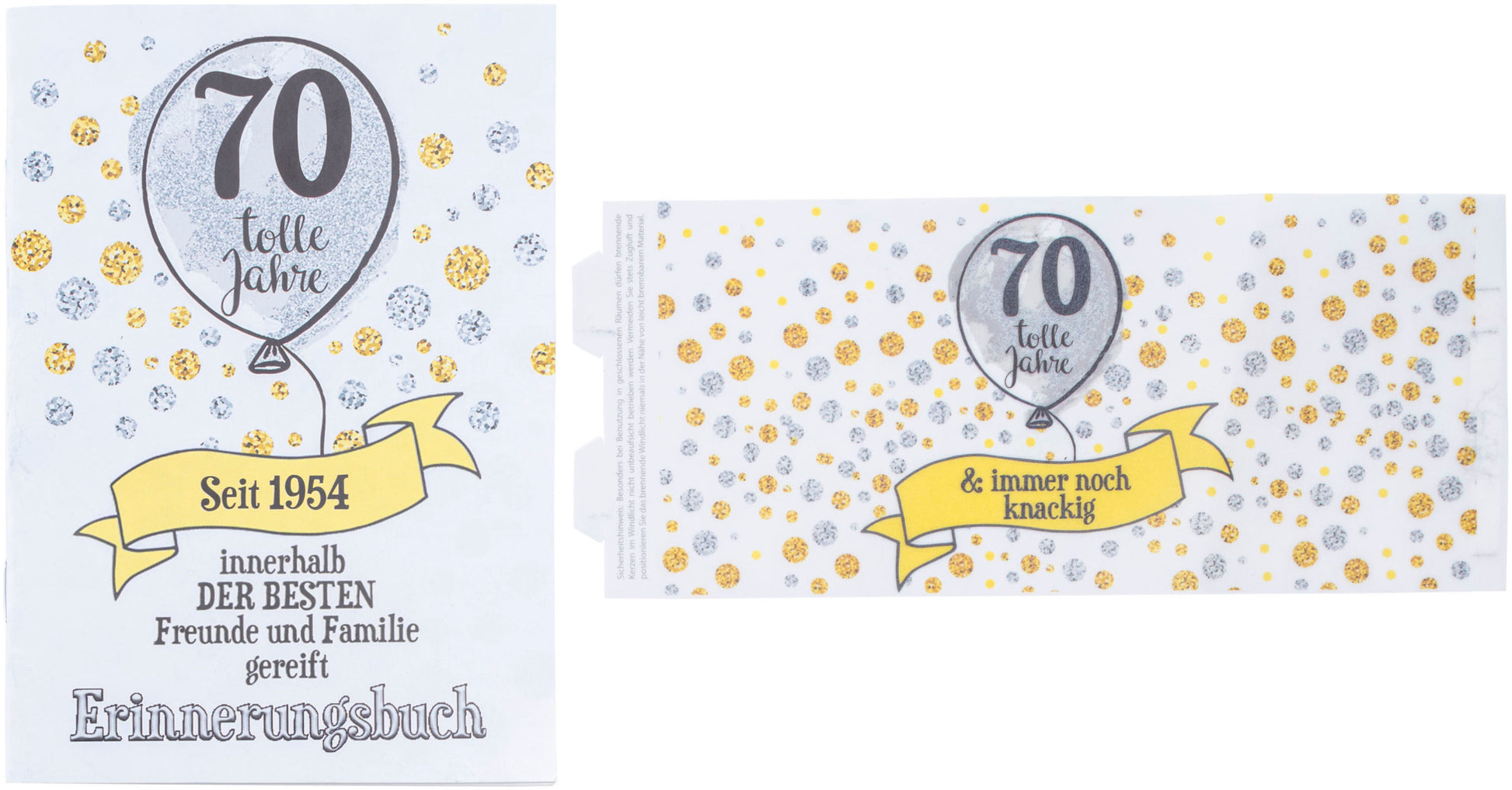 Auch große Geburtstagskinder lieben Überraschungen! Mit so einer Wundertüte wie aus Kindertagen wird es spannend: Erstmal fühlen, was sich darin verbergen könnte... Im Inneren steckt viel "Zubehör", das zum Feiern, Freuen und Dekorieren einlädt. Zum Beispiel ein Anhänger mit dem Spruch „Bester Jahrgang 1954 “ – so fühlen sich Jubilare gleich etwas jünger … Eine Geburtstagskerze und Konfetti sind natürlich auch dabei. Insgesamt sind es 8 Teile, vom Button bis zum Erinnerungsbuch zum Selbstgestalten. Mit Karten und Übersichten: "Wir feiern dieses Jahr zusammen“ – Prominente, die im gleich Jahr Geburtstag haben – und „Was geschah 1954?“ Wichtige Ereignisse im Überblick. Viel Spaß beim Schenken und Feiern!