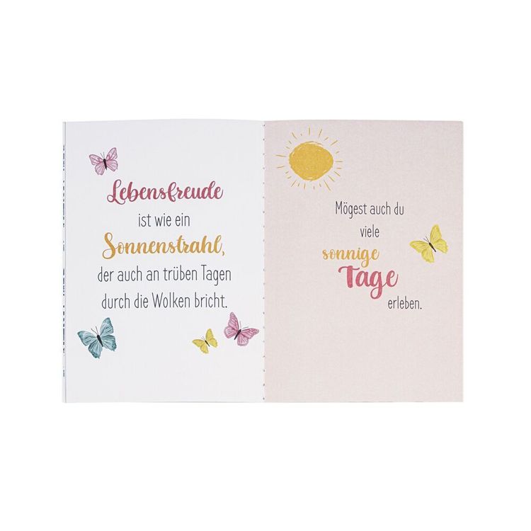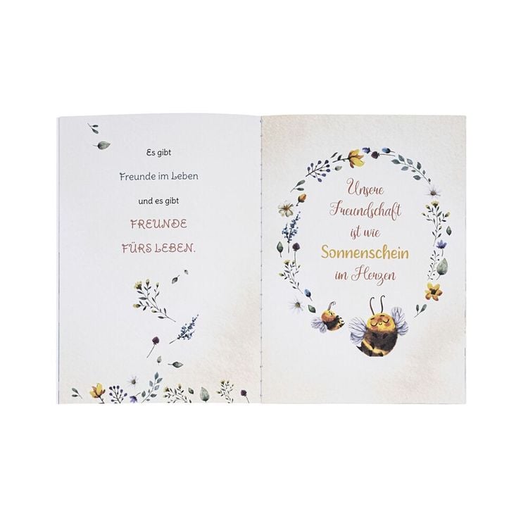 3 liebevoll illustrierte Wunschhefte Format je DIN A6 Mit guten Wünschen und Sinnsprüchen Zusätzlich Platz für Ihre Widmungen Inkl. 3 Kuverts Für Lieblingsmenschen: Wunschhefte Freundschaft, Lebensfreude, Glück, 3er-Set Zeigen Sie Ihre Freundschaft, verschenken Sie Lebensfreude und wünschen Sie Glück! In diesem Set finden Sie zu jedem Thema das passende Wunschheft. Wunderschön farbenfroh illustriert, mit passenden Sinnsprüchen und liebevollen Wünschen für Herzensmenschen. Die Büchlein sind von immerwährendem Wert, denn Sie können die Seiten jeweils noch mit einer Widmung oder einem Insider-Text ergänzen. Das zeigt die innige Freundschaft und Verbundenheit auf eine einzigartige und ganz persönliche Weise. Der Clou: Der Beschenkte kann das Büchlein immer wieder durchblättern, sich Inspiration und eine kleine Aufmunterung holen. Ist das nicht eine schöne Vorstellung, dass Sie dadurch einem lieben Menschen ein Lächeln ins Gesicht zaubern? Wunschhefte Freundschaft, Lebensfreude, Glück, 3er-Set je mit 16 Seiten, unterschiedlich gestaltet Fadenheftung passende Sinnsprüche und Illustrationen zum jeweiligen Motto 3 Themenwelten: Auf die Freundschaft/ Auf die Lebensfreude/ Auf das liebe Glück mit Platz für kleine persönliche Widmungen auf jeder Seite inkl. 3 Kuverts zum Überreichen oder Versenden Format: DIN A6 Die Wunschhefte Freundschaft, Lebensfreude, Glück, 3er-Set, zeigen Ihren Lieblingsmenschen, wie gern Sie sie haben. Jedes Büchlein enthält eine bunte Sammlung persönlicher Wünsche und Sinnsprüche. Zusätzlich ist jede Seite ganz entzückend illustriert. Da nimmt man sein eigenes Wunschheft immer wieder gern zur Hand und holt sich seine Portion Harmonie, Glück und Lebensfreude! Jetzt gleich bestellen bei uns im Online-Shop! Sie können rund um die Uhr nach Geschenk-ideen und Mitbringseln für alle Gelegenheiten stöbern.
