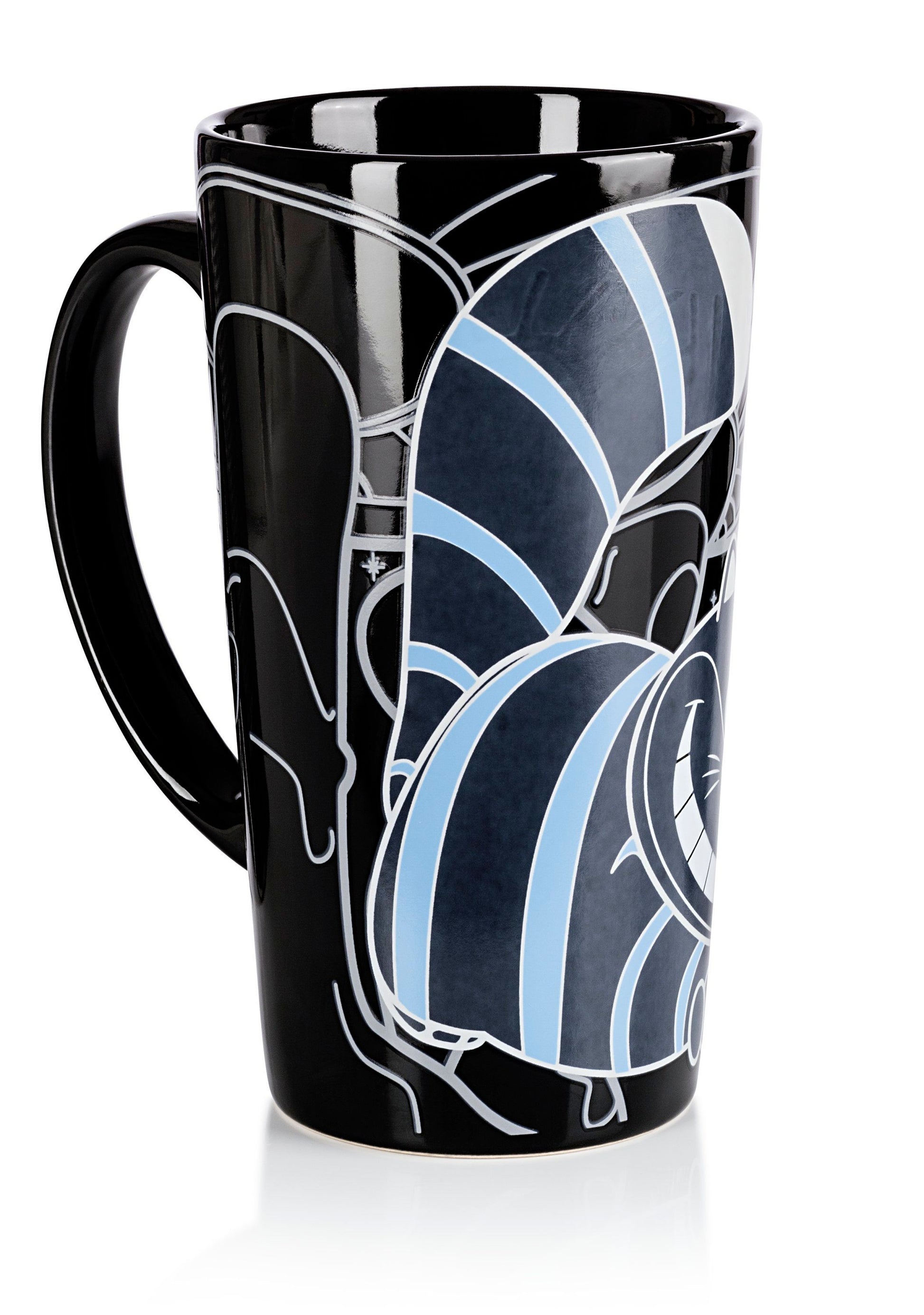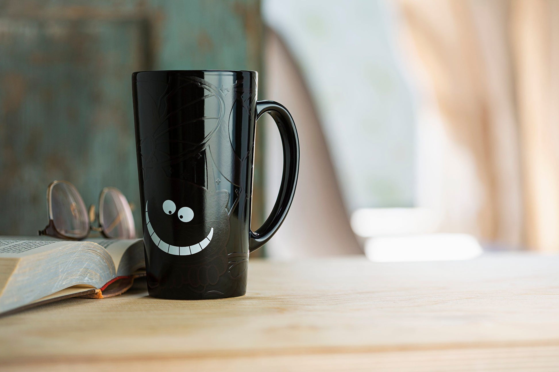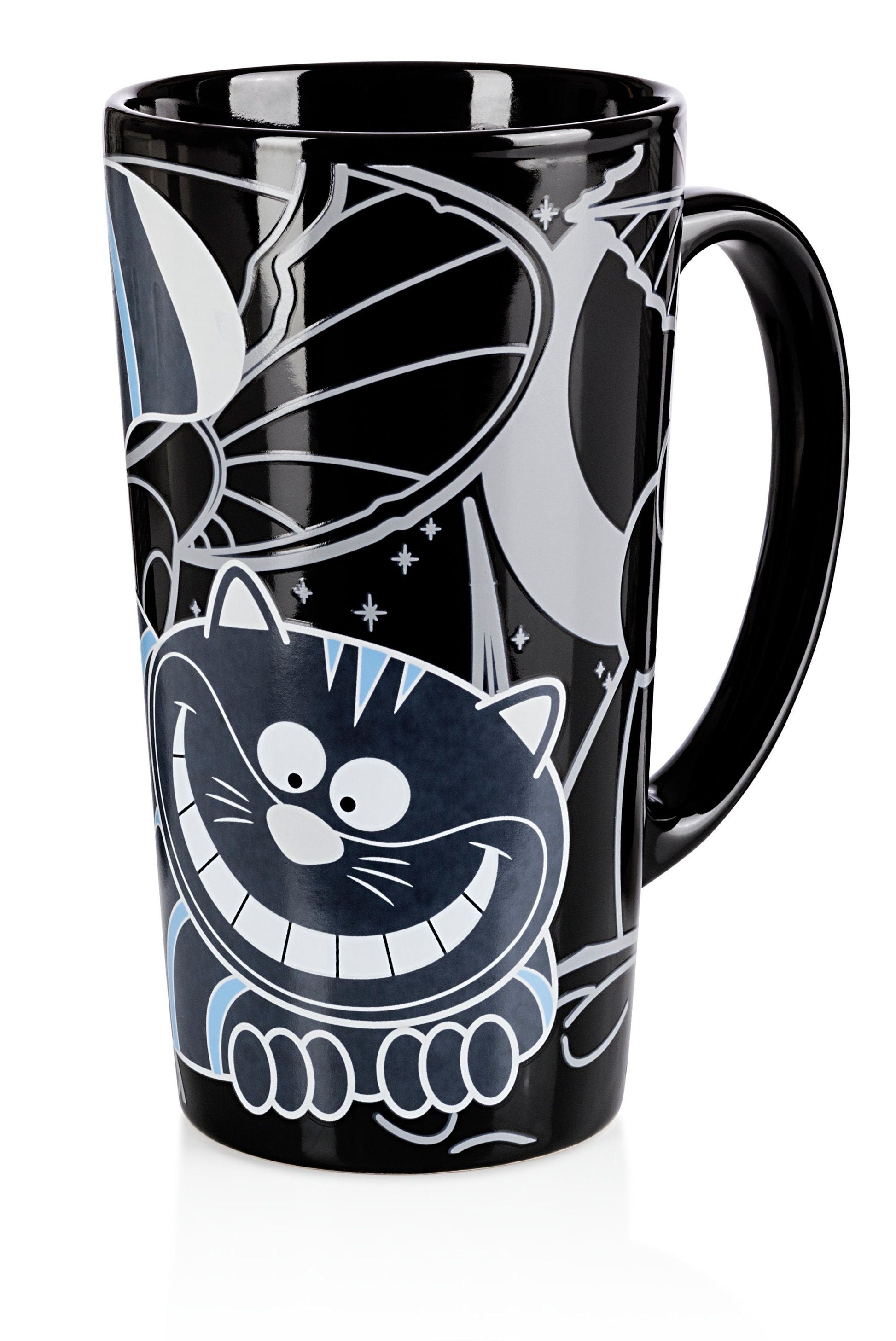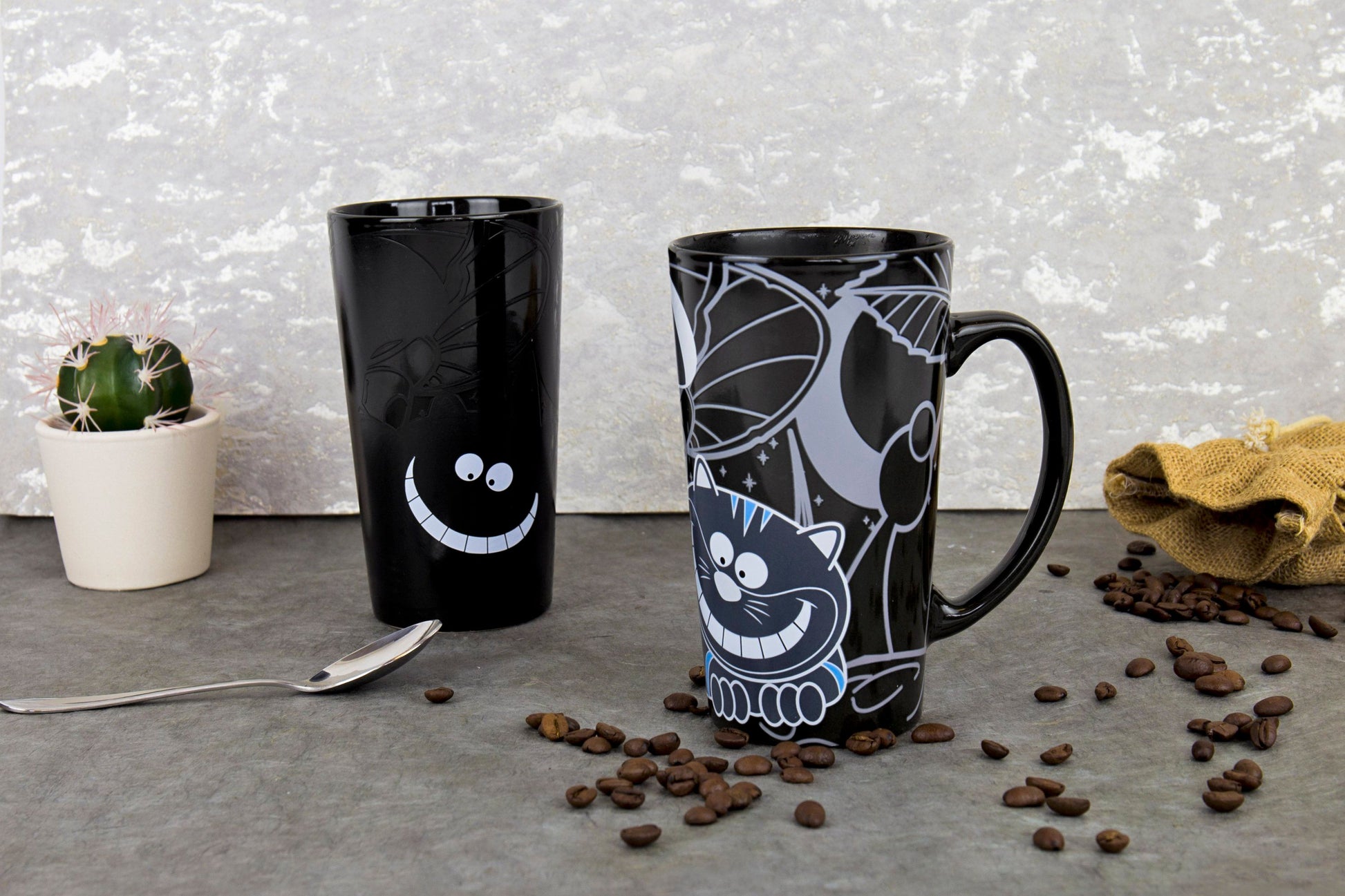 Man kennt sie aus "Alice im Wunderland". Da sitzt die Grinsekatze im Baum. Für diesen Becher hat sie einen lässigen Sprung gemacht - mit breitem Grinsen strahlt sie uns an. Aber erst, wenn heißer Kaffee oder Tee in den Becher gegossen werden - dann erscheint sie nach und nach in ihrer ganzen Pracht. Ein toller Hingucker am Frühstückstisch oder auf dem Schreibtisch!