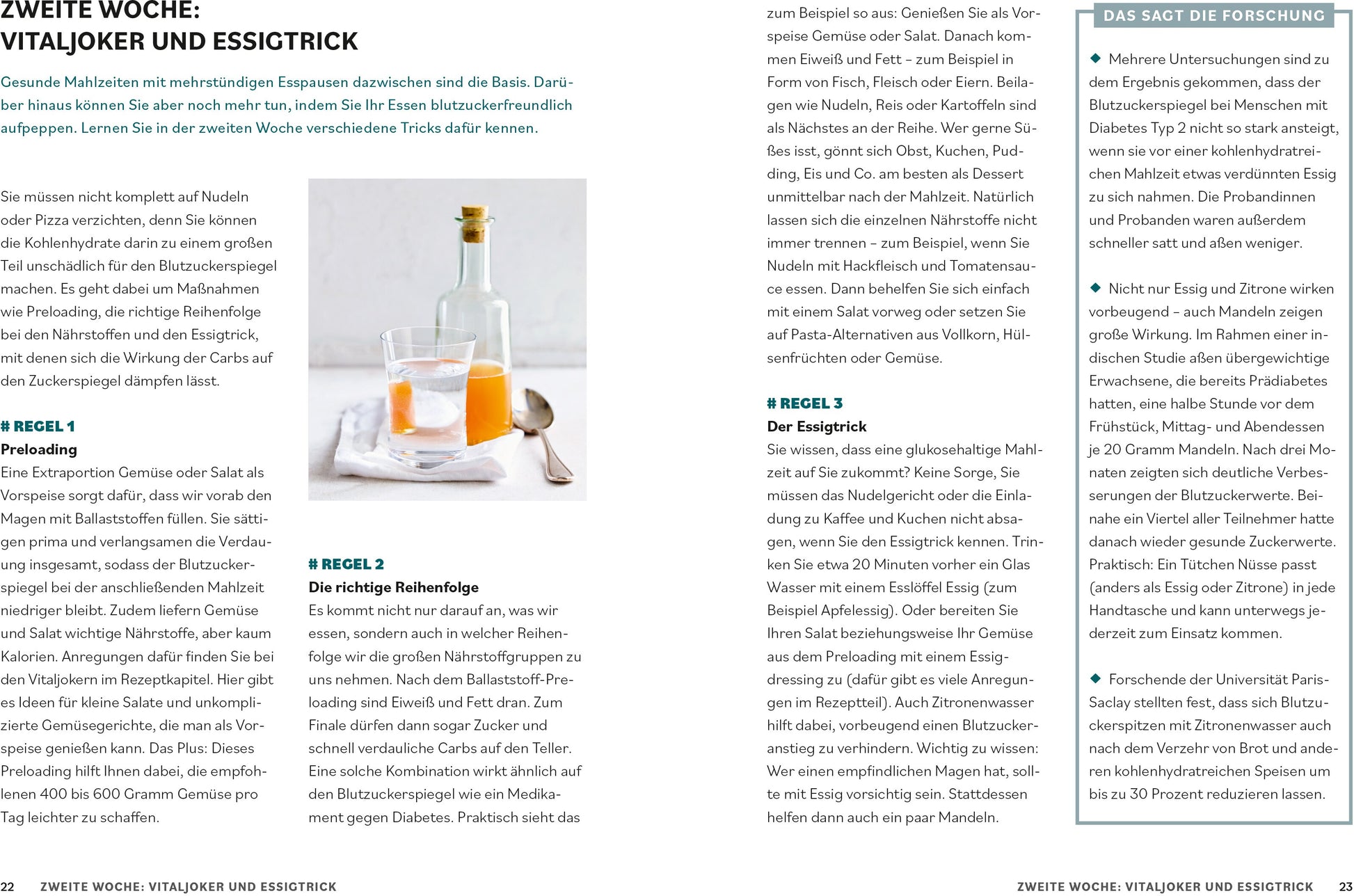 Hohe Zuckerwerte im Blut richten schon großen Schaden an, lange bevor Diabetes diagnostiziert wird: Sie attackieren Gefäße und Nerven, lassen uns früher altern und fördern Übergewicht ebenso wie schwere Erkrankungen. Das Gefährliche dabei: Die meisten Betroffenen wissen (noch) nichts davon und setzen damit ihre Gesundheit aufs Spiel. Bereits jeder fünfte Erwachsene leidet heute an Prä-Diabetes. Auch vermeintlich Gesunde kann es treffen, denn erhöhte Zuckerspiegel fallen anfangs oft nicht einmal in der Arztpraxis auf. Dabei lassen sich Diabetes Typ 2 und seine Vorstufen mit der richtigen Ernährung frühzeitig verhindern, lindern und sogar heilen. Deutschlands führender Ernährungsmediziner und Diabetologe, Ernährungs-Doc Matthias Riedl, zeigt, wie jeder sein Glukose-Management in nur vier Wochen verbessern kann, um fitter, schlanker und gesünder zu werden. Wer wenige Regeln beachtet, kann die Blutzuckerkurve flach halten, ohne zu verzichten. Alltagstaugliche Rezepte und zahlreiche nützliche Tipps unterstützen das Programm.