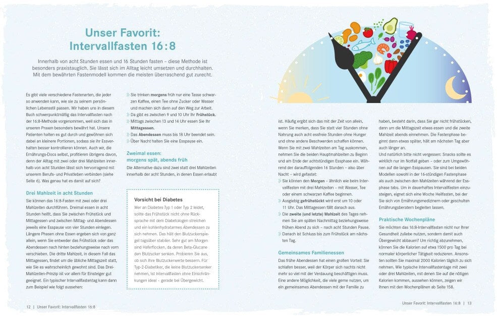 Die Heilkraft des Fastens ist wissenschaftlich belegt: Es kann bei vielen Krankheiten vorbeugen und heilen, es senkt den Cholesterinspiegel, stärkt das Immunsystem, lindert chronische Schmerzen - und überschüssige Kilos verschwinden wie von selbst. Die Ernährungs-Docs erklären, warum Essensverzicht auf Zeit ein Gewinn für die Gesundheit ist. Sie zeigen, was es mit dem aktuellen Fasten-Trend auf sich hat, und haben ein alltagstaugliches Konzept entwickelt, bei dem das bewährte intermittierende Fasten 16:8 als Schlüssel zur Selbstheilung und zum gesunden Abnehmen im Mittelpunkt steht. Jeder kann selbst festlegen, wann er innerhalb von acht Stunden seine Mahlzeiten einnimmt. Um die Esspausen gut durchzuhalten und den Körper mit allem Wichtigen zu versorgen, verraten die E-Docs ihre besten Ernährungstipps: Aus ihrer umfangreichen Rezept-Sammlung kann man sich ganz leicht das für sich passende Intervallfasten-Programm zusammenstellen. Das Resultat: Man wird gesünder und schlanker, fühlt sich frischer, wacher und konzentrierter. So kann jeder von den positiven Effekten des Teilzeit-Fastens profitieren!